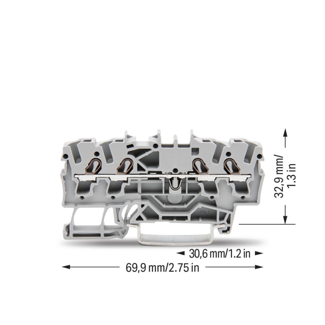 Four clamping points: Single potential through‑wiring with two jumper slots