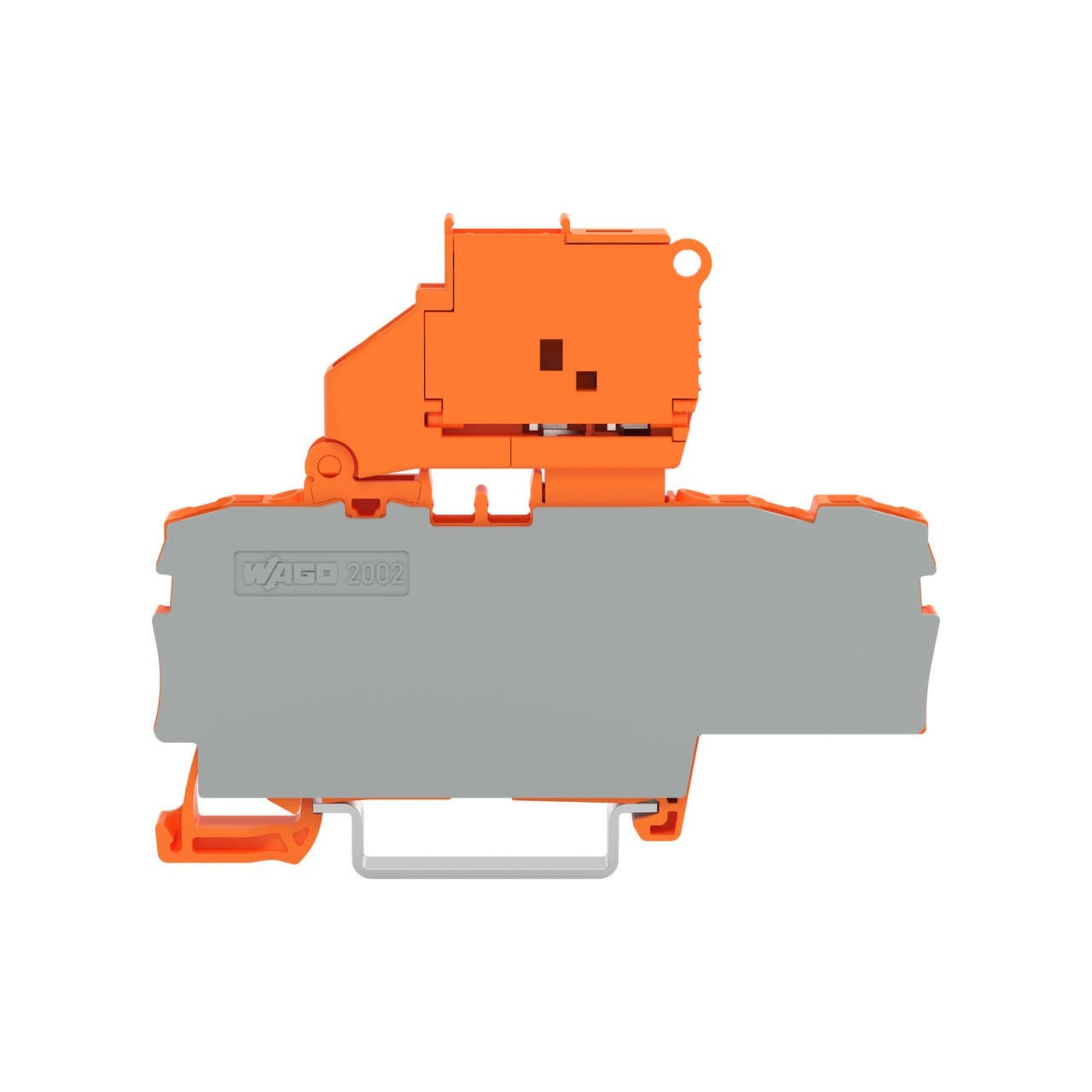 2002-1712 – WAGO | 3-conductor fuse terminal block; with pivoting fuse holder; and end plate; for 5 x 20 mm miniature metric fuse; without blown fuse indication; for DIN-rail 35 x 15 and 35 x 7.5; 2.5 mm²; Push-in CAGE CLAMP®; orange