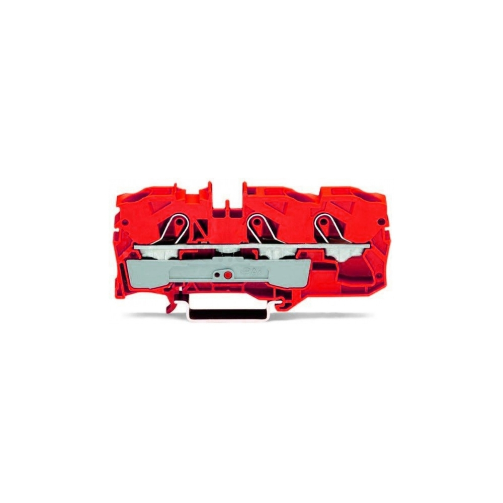 2010-1303 | 3-conductor through terminal block; 10 mm²; suitable for Ex e II applications; side and center marking; for DIN-rail 35 x 15 and 35 x 7.5; Push-in CAGE CLAMP®; 10,00 mm²; red