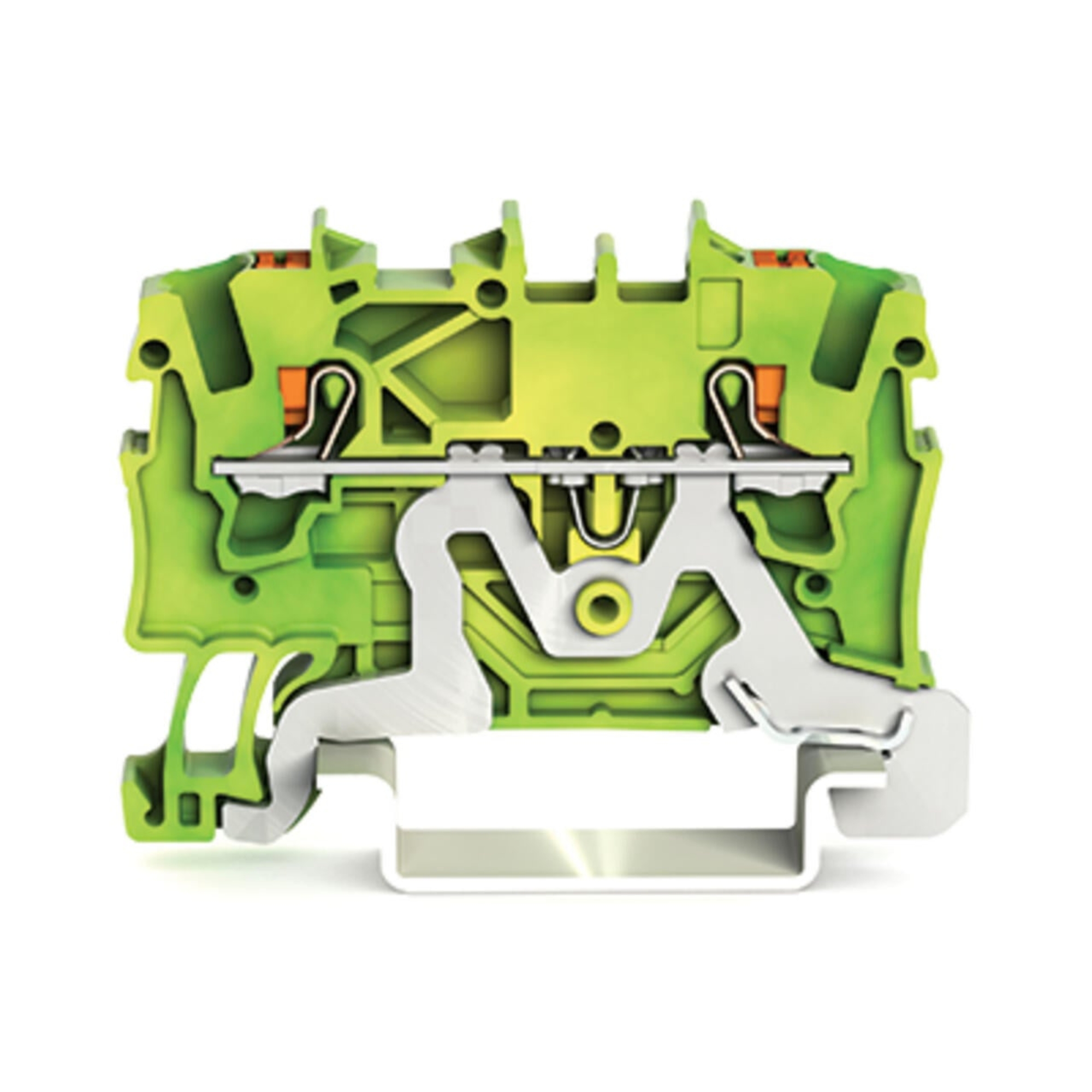 2201-1207 – WAGO | TOPJOB®S ground terminal block with Push-buttons; rail mount; 2-conductor; 4.2 mm wide; green-yellow