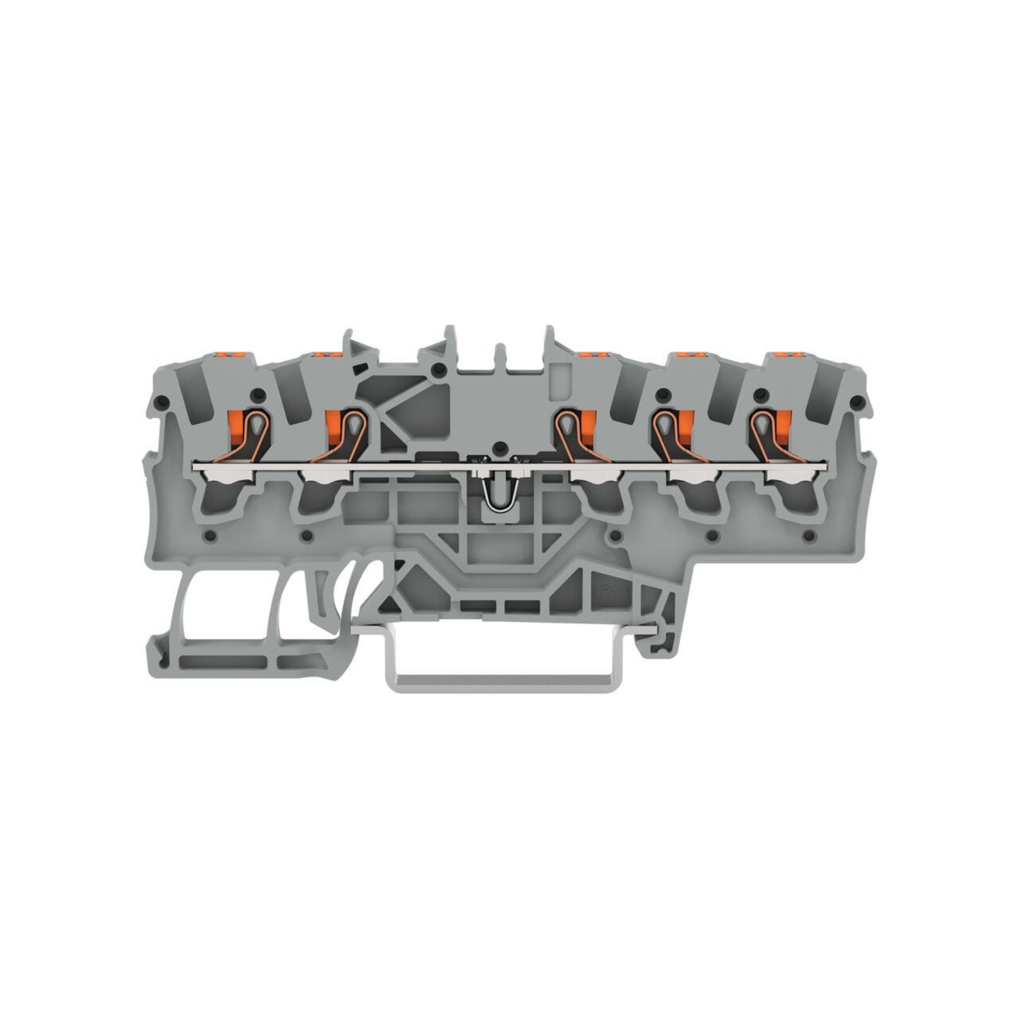 2201-1501 – WAGO | 5-conductor through terminal block; with push-button; 1.5 mm²; with test port; suitable for Ex e II applications; side and center marking; for DIN-rail 35 x 15 and 35 x 7.5; Push-in CAGE CLAMP®; 1,50 mm²; gray