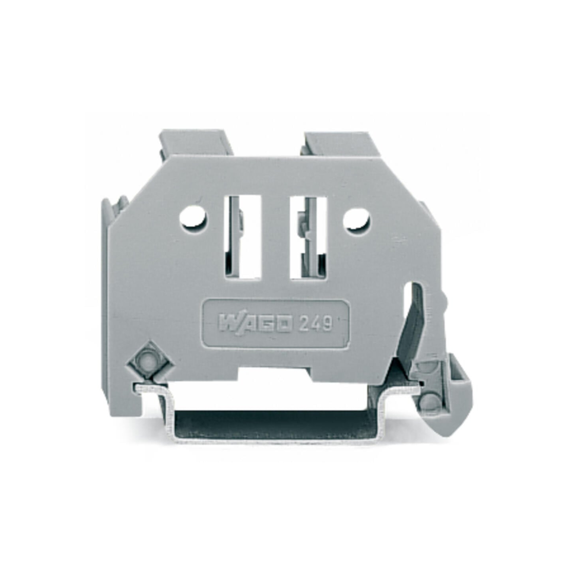 249-117 – WAGO | Screwless end stop; 10 mm wide; for DIN-rail 35 x 15 and 35 x 7.5; gray