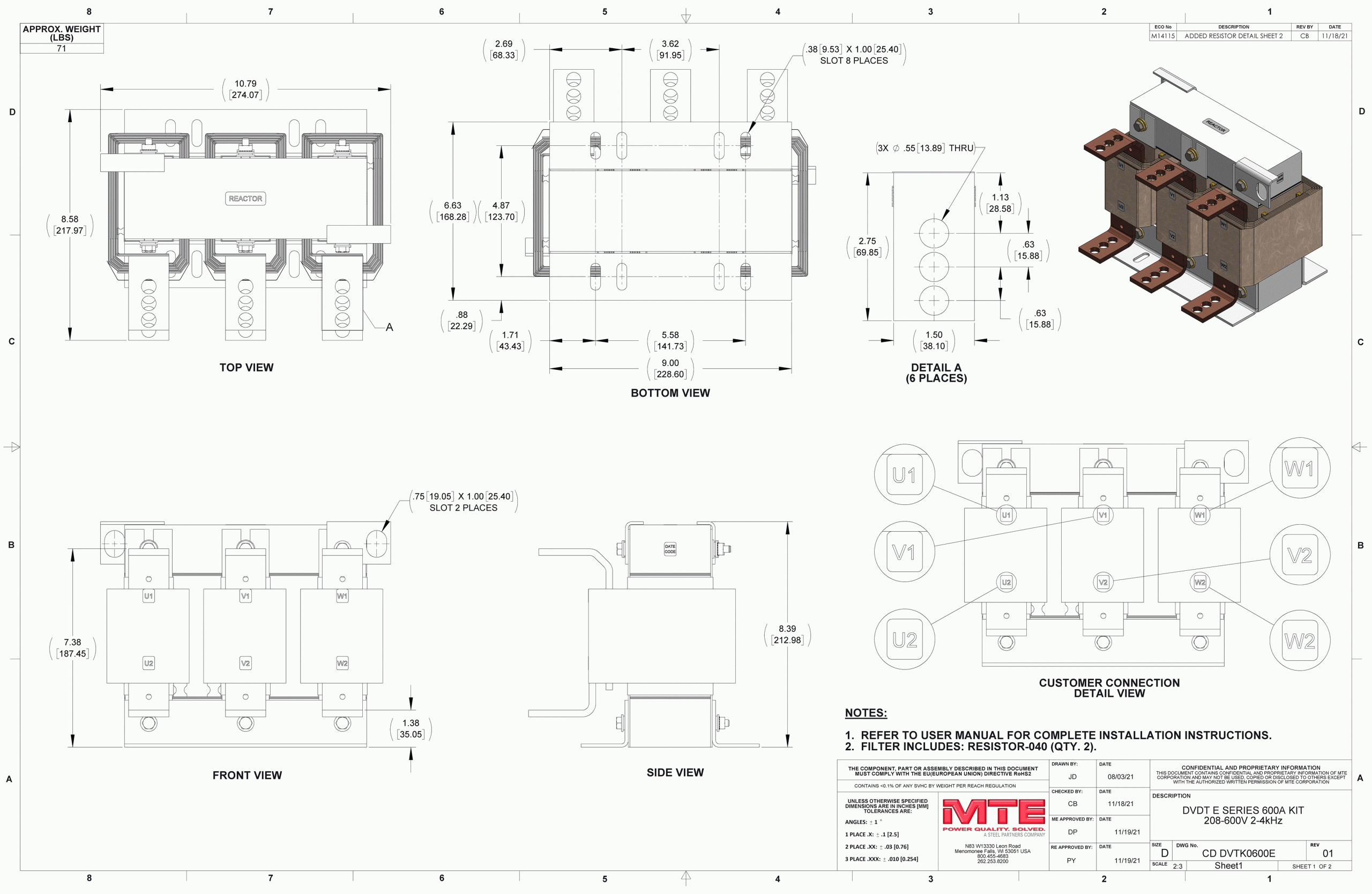 - Installed in a variable torque AC variable frequency drive application