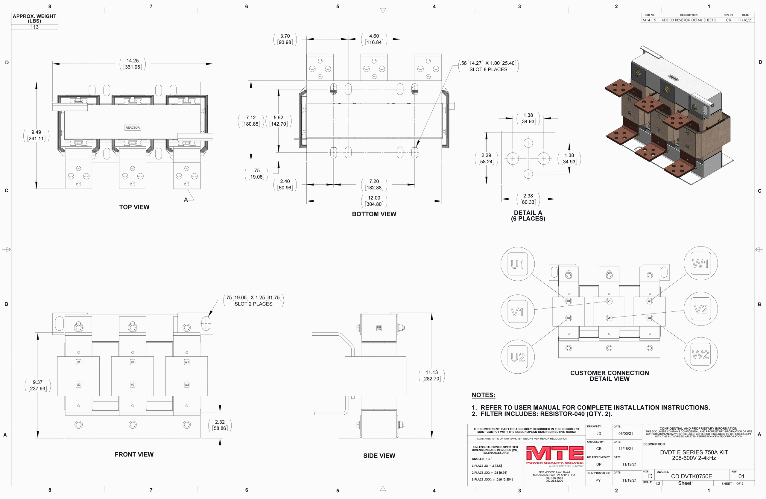 - Installed in a variable torque AC variable frequency drive application