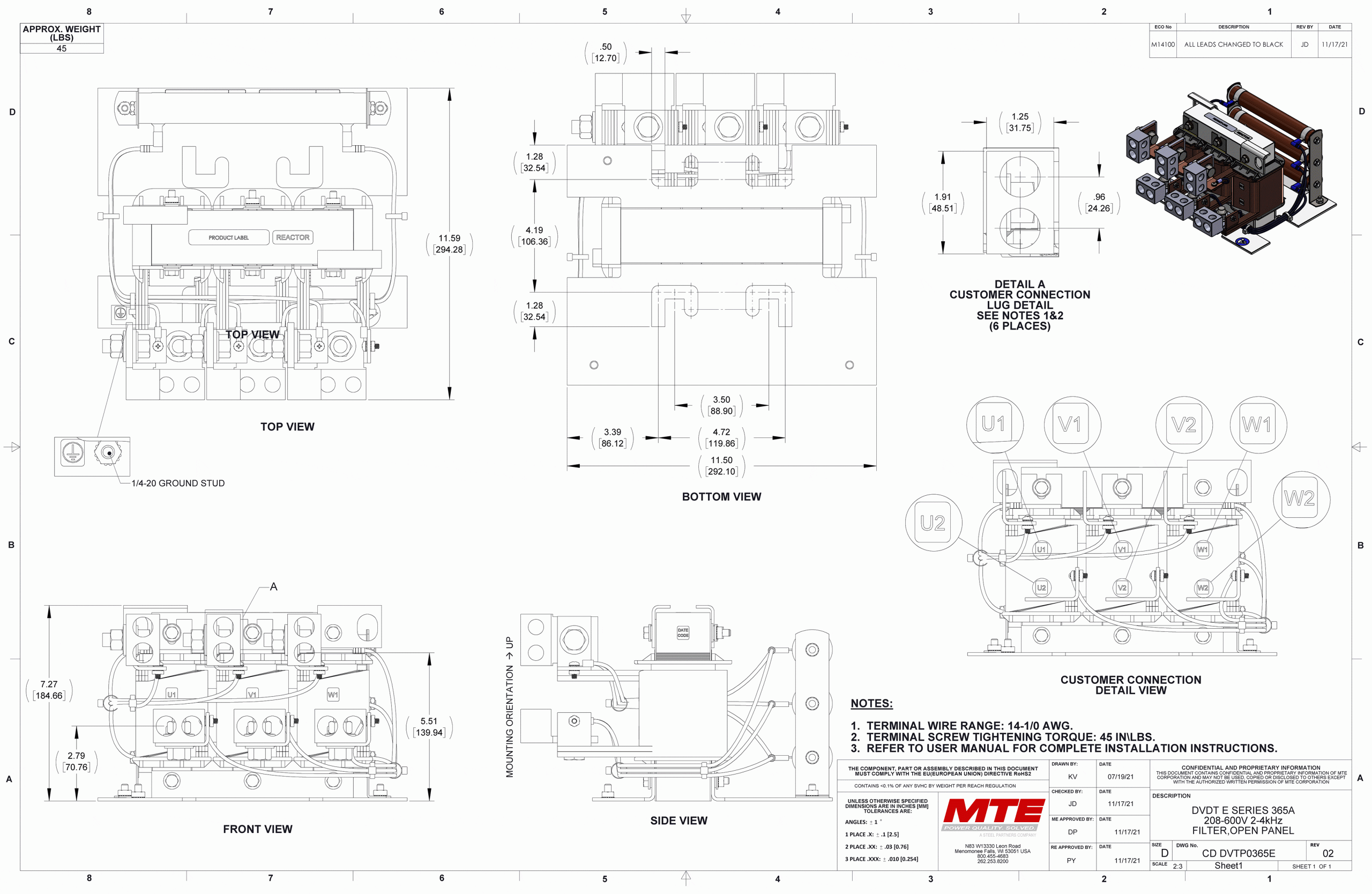 DVTP0365E – MTE | dV E-Series, 208-600V, 365A, 2-4kHz, Op