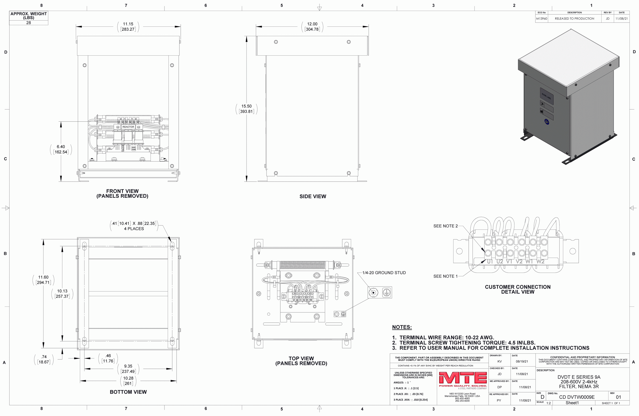 The MTE dV E-Series dV/dt motor protection filters are engineered to protect motor windings from damage and prevent premature motor insulation failure. This ensures minimized downtime and increased operational efficiency. The filters provide robust motor protection, extend cable life, and are supported by MTE’s industry-leading Performance Guarantee.