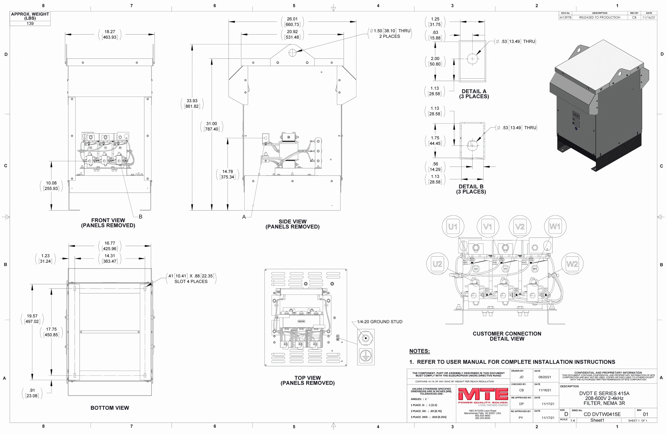 - Installed in a variable torque AC variable frequency drive application