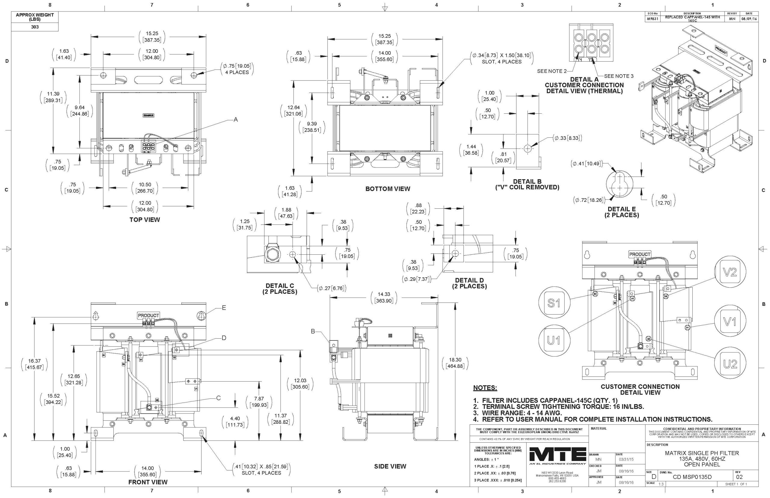 MSP0135D – MTE | Matrix ONE, 480V, 60Hz, 135 Amps, Open