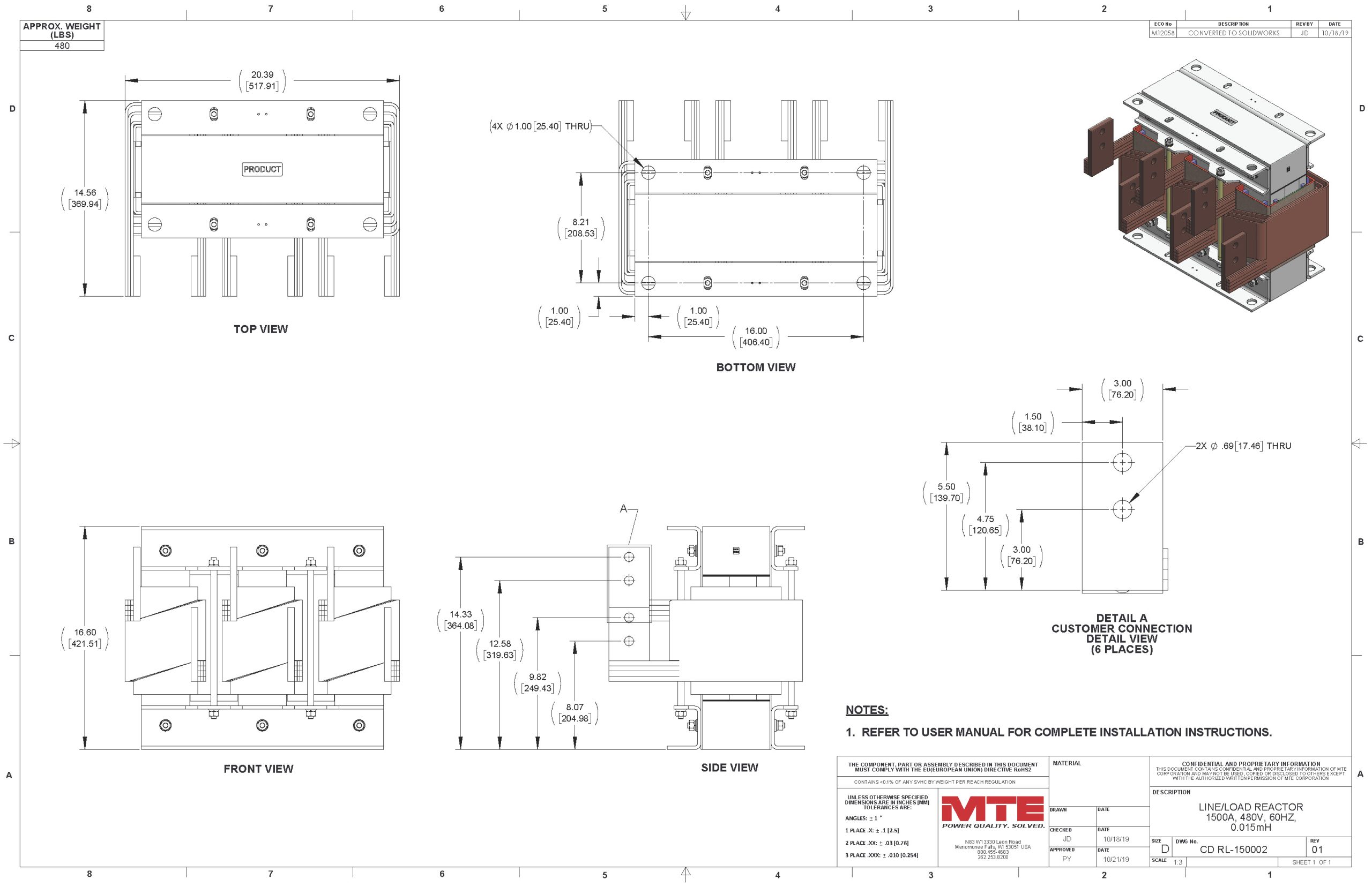 RL-150002 – MTE | Line/load Reactor,0.015mH,1500Amps,Open