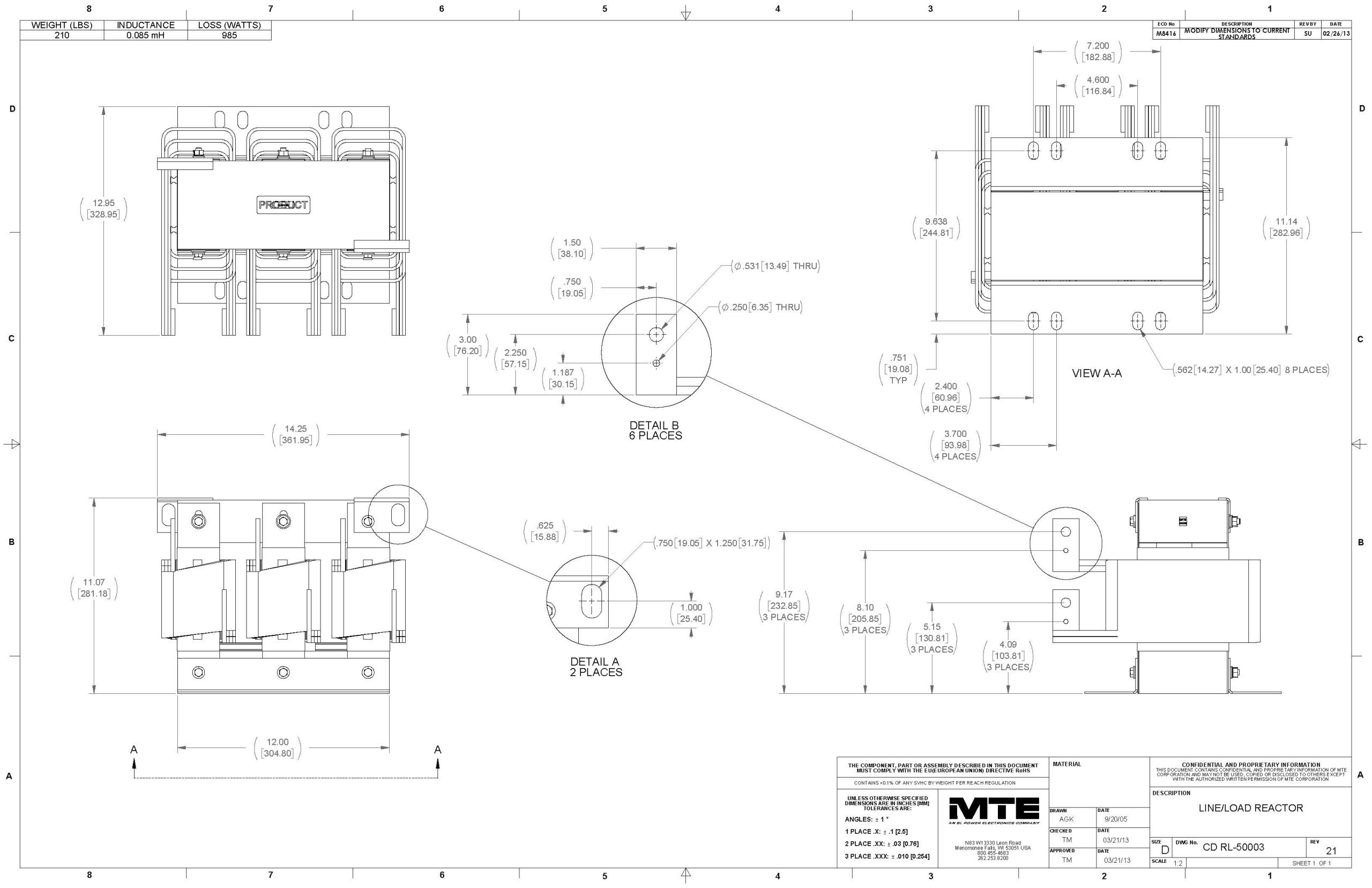 RL-50003 – MTE | Line/load Reactor,0.085mH,500Amps,Open