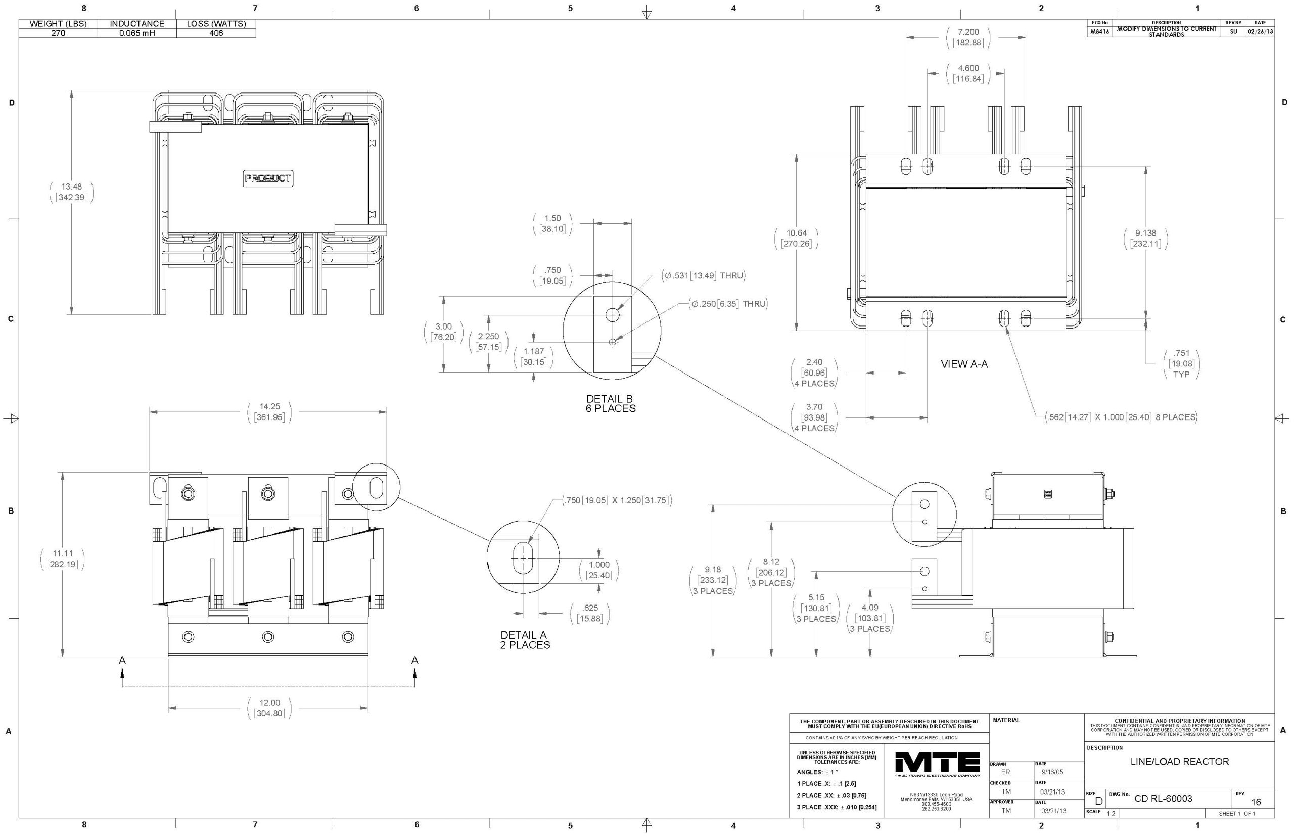 RL-60003 – MTE | Line/load Reactor,0.065mH,600Amps,Open