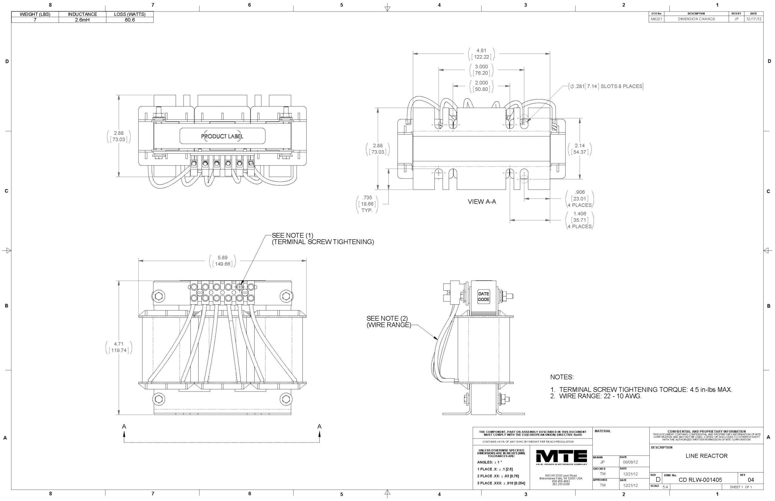 The RLW-001405 reactor is part of MTE’s RLW series, known for its advanced filtering capabilities and compact design. It is designed to optimize the performance and longevity of electrical equipment by mitigating power line disturbances effectively.