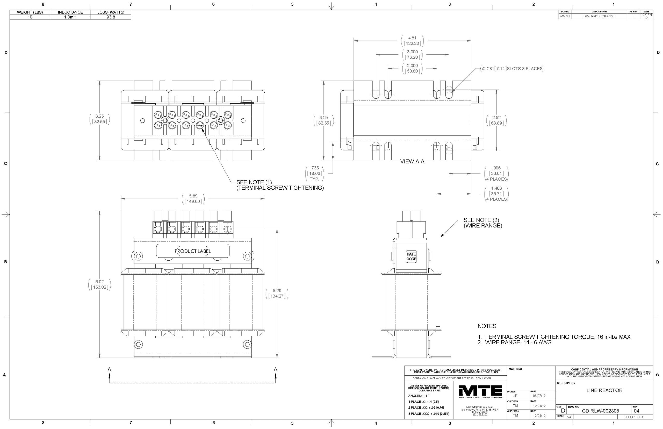 The MTE RLW-002805 reactor is designed to enhance the reliability and performance of electrical systems by mitigating power line disturbances. This 3-phase, 1.3mH inductance reactor with a 28A current rating is ideal for various applications, including power conversion units and rectifiers. Its open design ensures optimal cooling and performance in demanding environments.