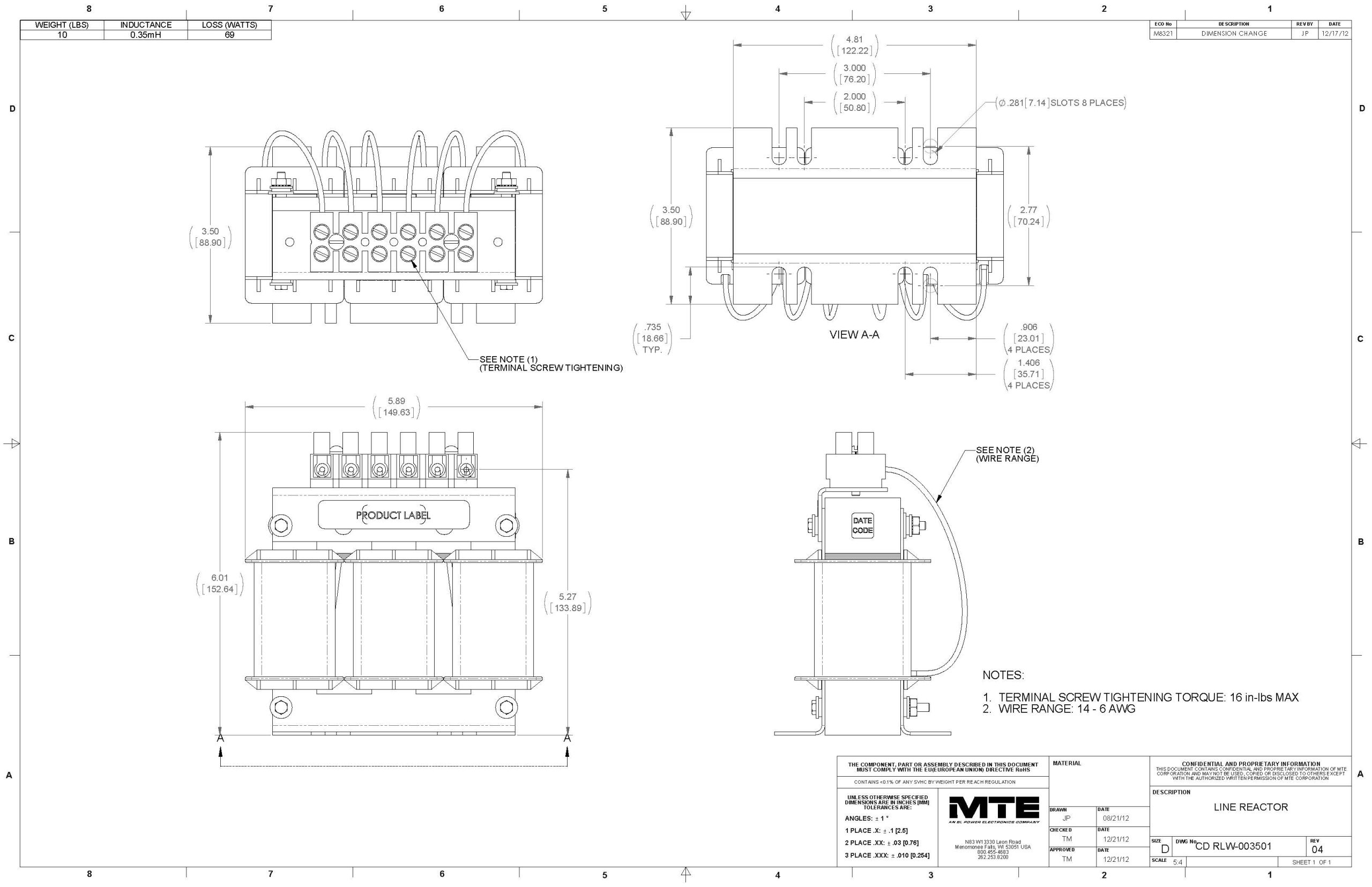 The RLW-003501 reactor from MTE is part of the RLW series, known for its robust design and effective transient protection capabilities. It is ideal for industrial applications where electrical equipment requires protection from voltage spikes and disturbances.