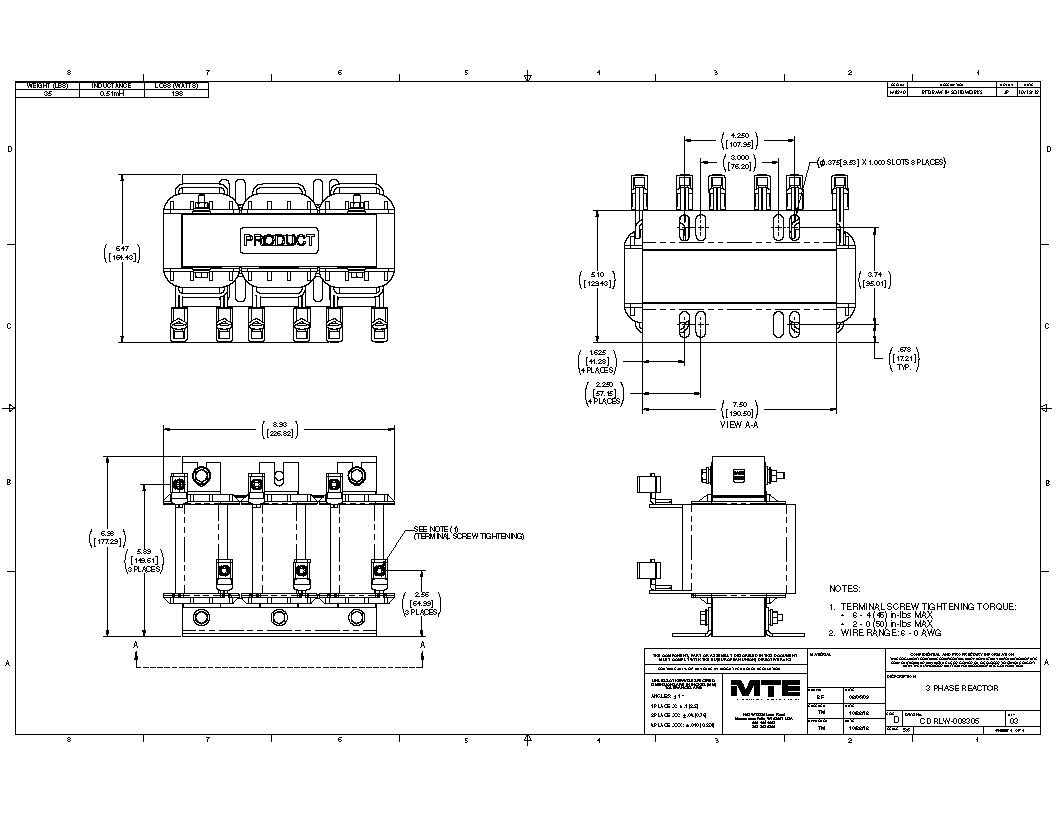 The MTE RLW-008305 reactor is engineered to ensure the efficient and stable operation of industrial power systems. With a current rating of 83 amps and an inductance of 0.51mH, it effectively filters power line disturbances, offering transient protection and enhancing system performance. Compliant with RoHS and REACH standards, this reactor demonstrates environmental responsibility. Its open design facilitates easy installation and maintenance, making it suitable for various applications, including single-phase drives. Epoxy impregnation minimizes audible noise and improves structural integrity and moisture resistance. Featuring multiple mounting options, this reactor offers flexibility in machine building needs. With CE and UL approvals, it meets international quality and safety standards.