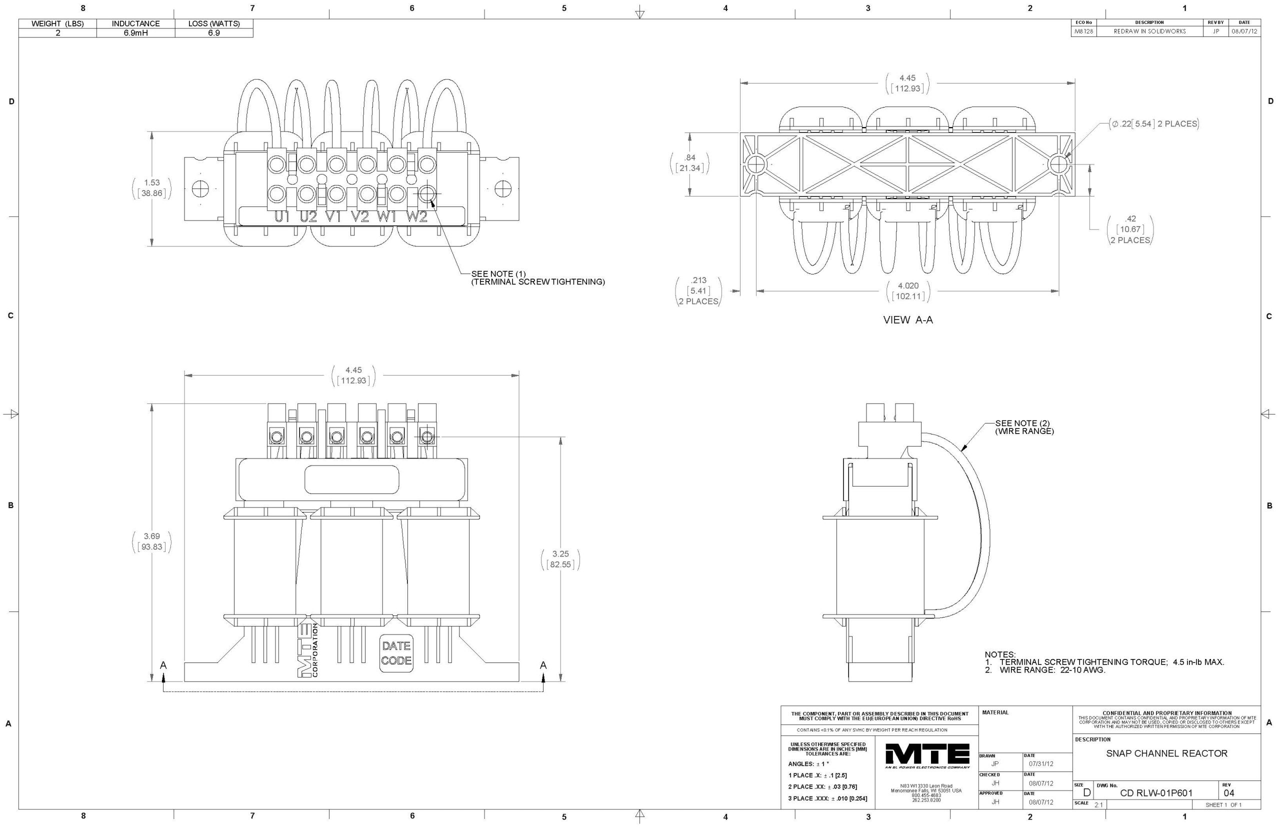 The MTE RLW-01P601 reactor is designed to provide robust transient protection and enhance the operational efficiency of industrial equipment. With an inductance of 6.900mH and a current rating of 1.6 amps, it effectively filters power line disturbances and ensures stable performance for 3-phase systems. This reactor is particularly suited for applications requiring reliable voltage stabilization and noise reduction.