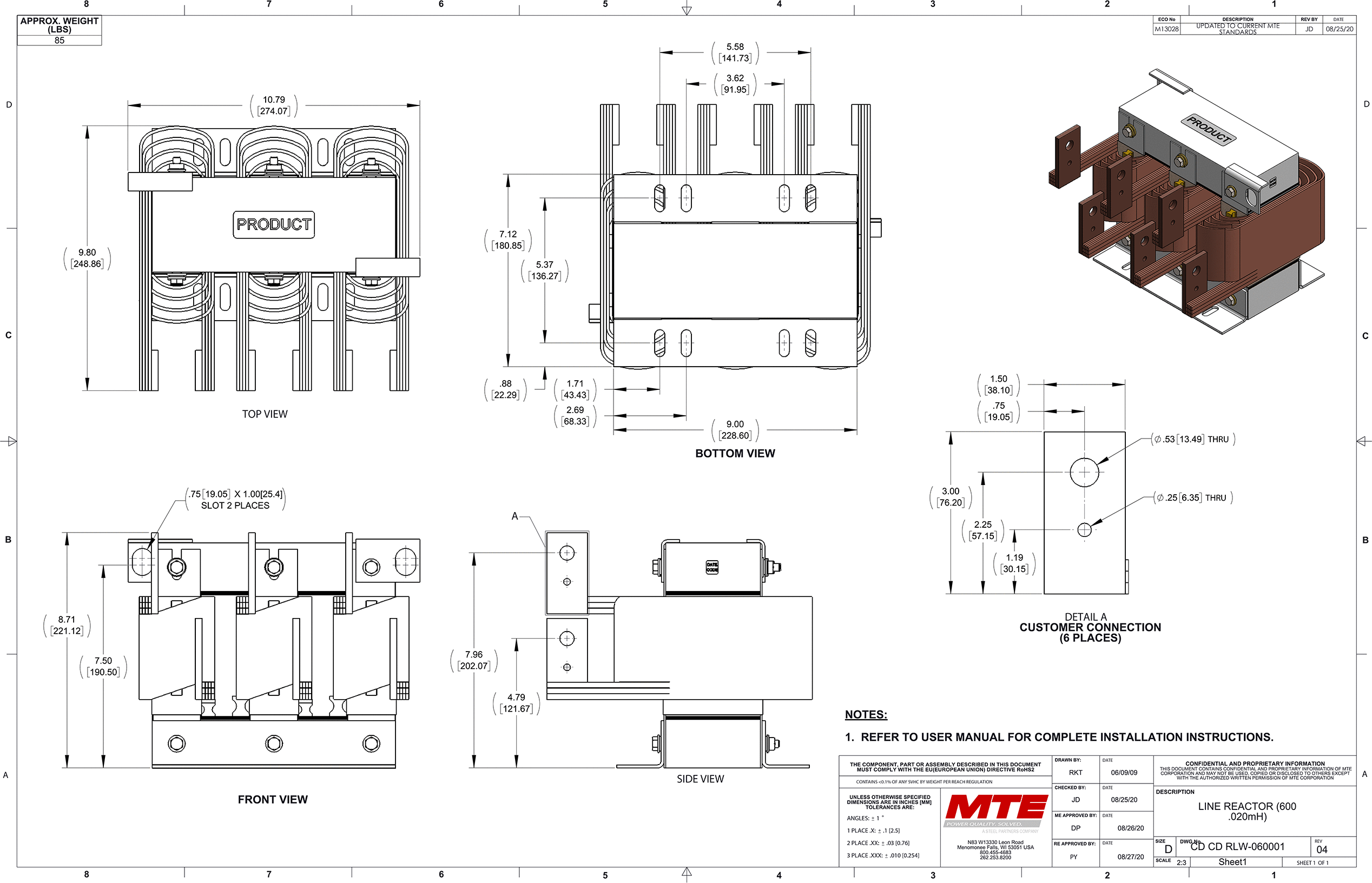 Protect your sensitive equipment with the RLW Line and Load Reactors, a state-of-the-art solution designed for modern industrial environments. These reactors provide an economical and efficient way to absorb everyday power line disturbances that can lead to costly downtime or damage to variable frequency drives (VFDs). Engineered for versatility, they function effectively on both the line and load sides, reducing nuisance tripping and minimizing long lead effects. With a specialized epoxy-impregnated design, the RLW series not only ensures structural and moisture integrity but also operates with significantly reduced audible noise, making it the ideal choice for high-performance applications.