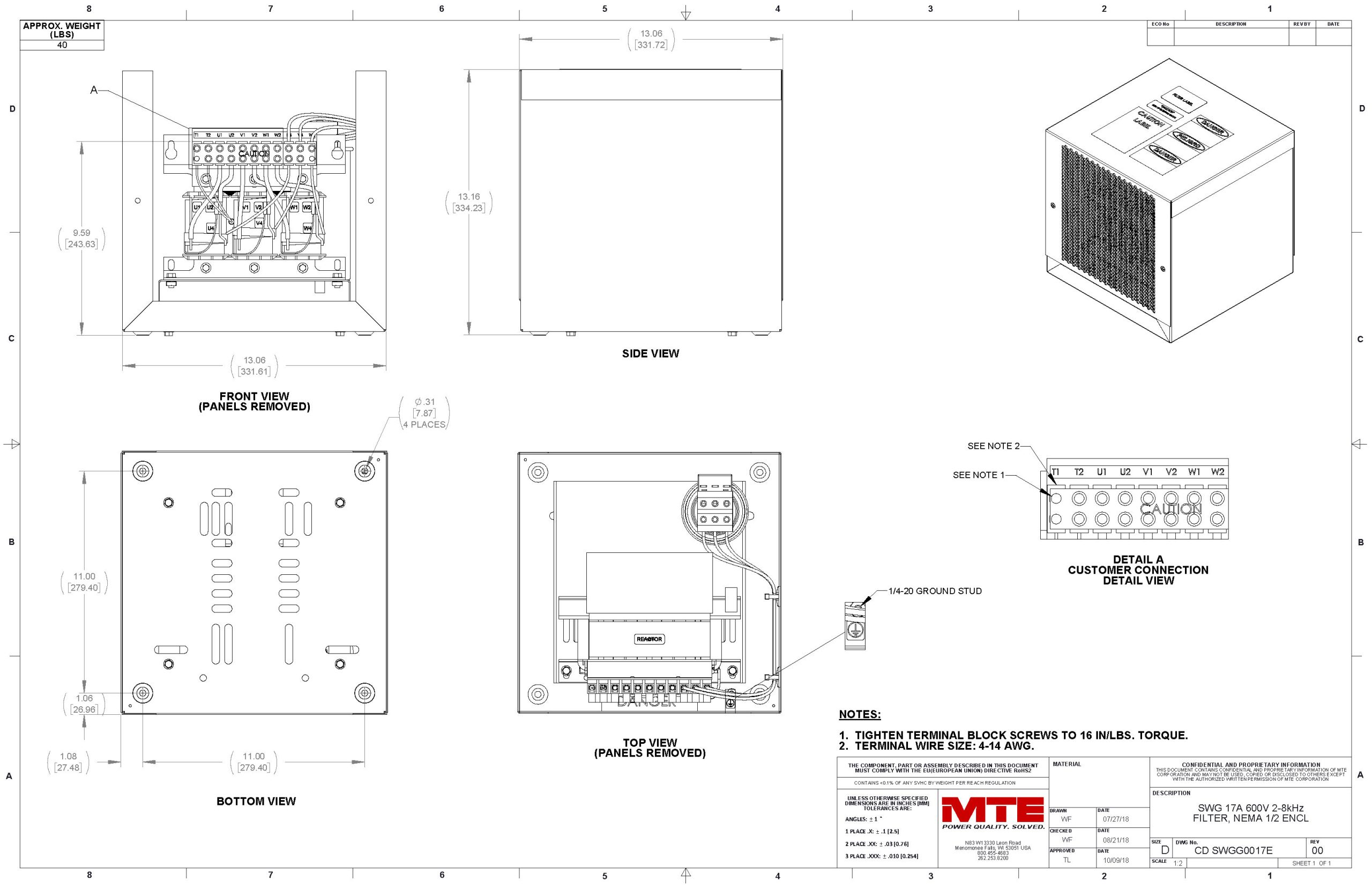 For ultimate motor protection and power quality, there is nothing better than the MTE SineWave Guardian® Filter. Designed to provide best-in-class protection for motors at distances up to 15,000 feet, this filter excels even in the hottest, harshest, and most remote locations on earth. By expertly cleaning the PWM waveforms generated by Variable Frequency Drives (VFDs) and rejecting the carrier frequency, the SineWave Guardian virtually eliminates high-frequency content and voltage peaks. This results in significantly reduced motor heating, extended equipment life, and minimized downtime. With its modular design and high efficiency, it is the premier choice for demanding applications from steel mills to oil fields.