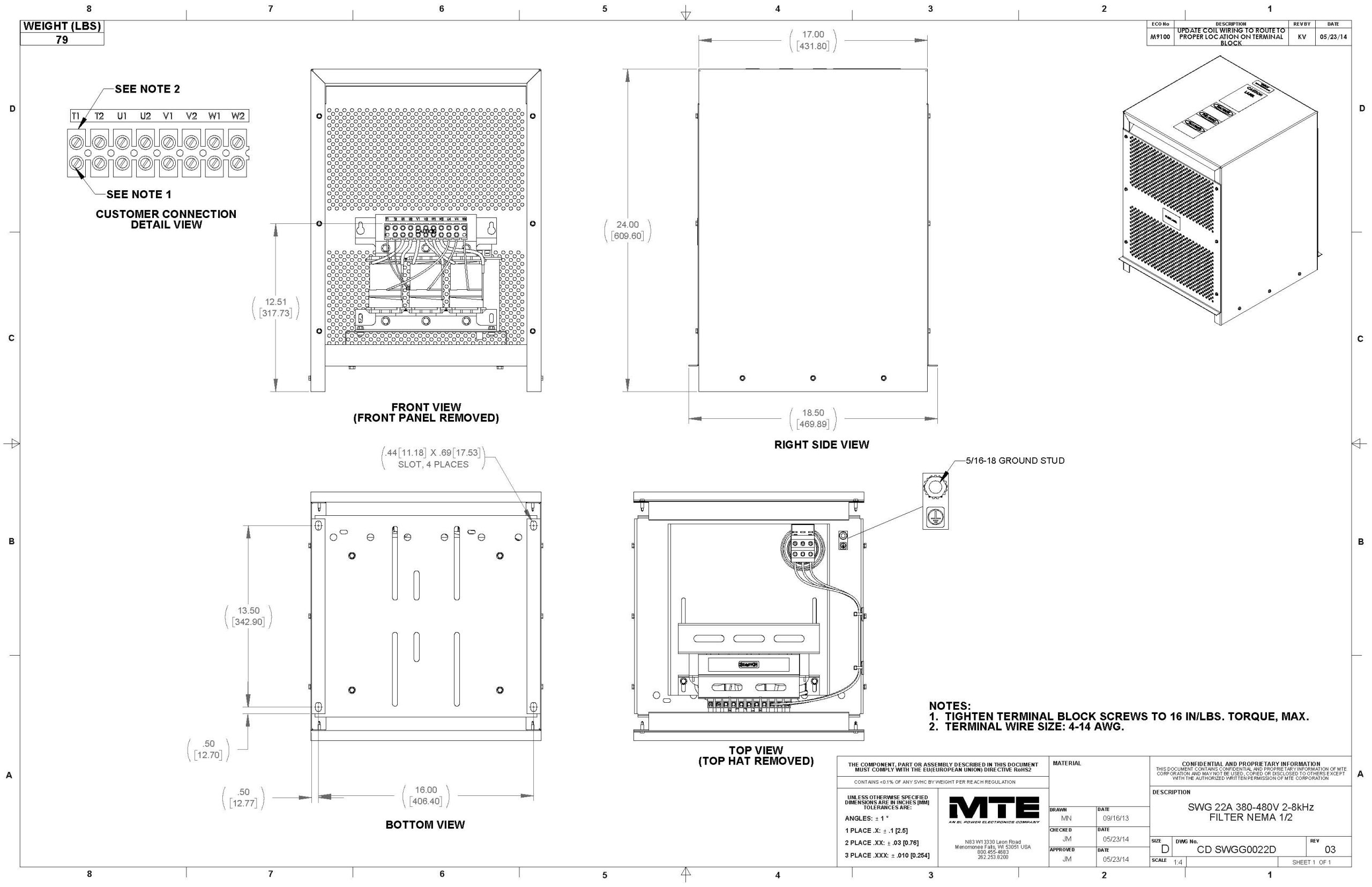 SWGG0022D – MTE | SineWave Guardian, 380-480vac, 0-60Hz, 22Amps, NEMA1/2