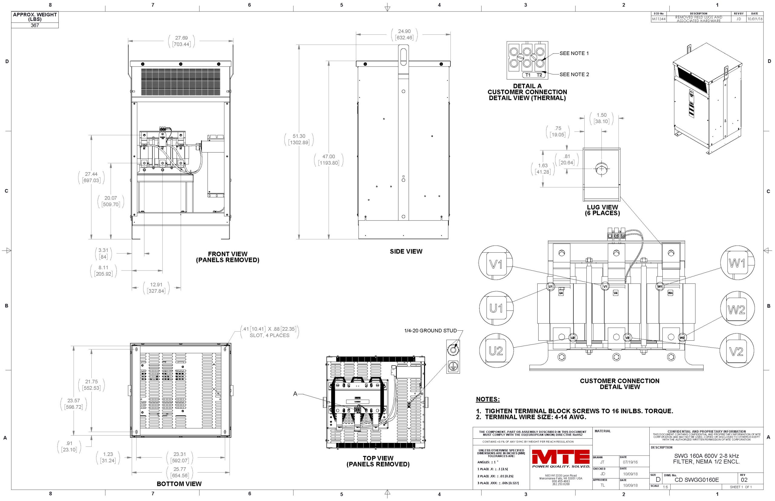 For ultimate motor protection and power quality, there is nothing better than the MTE SineWave Guardian® Filter. Designed to provide best-in-class protection for motors at distances up to 15,000 feet, this filter excels even in the hottest, harshest, and most remote locations on earth. By expertly cleaning the PWM waveforms generated by Variable Frequency Drives (VFDs) and rejecting the carrier frequency, the SineWave Guardian virtually eliminates high-frequency content and voltage peaks. This results in significantly reduced motor heating, extended equipment life, and minimized downtime. With its modular design and high efficiency, it is the premier choice for demanding applications from steel mills to oil fields.