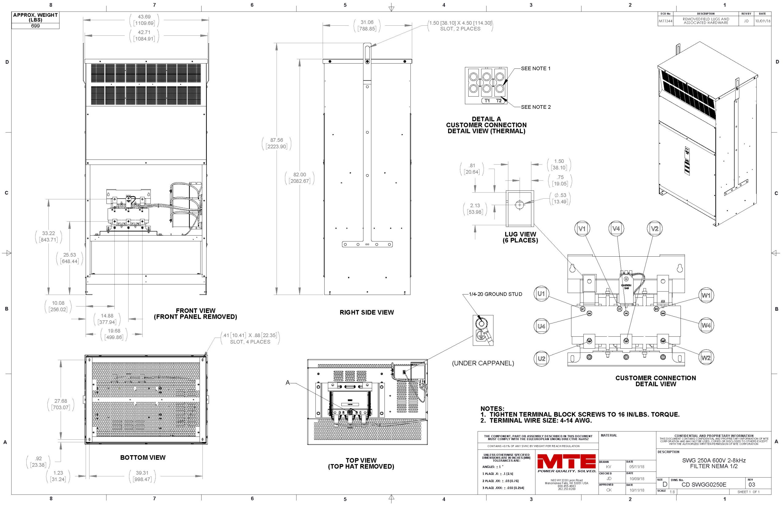 SWGG0250E – MTE | SineWave Guardian, 550-600vac, 0-60Hz, 250Amps, NEMA 1/2