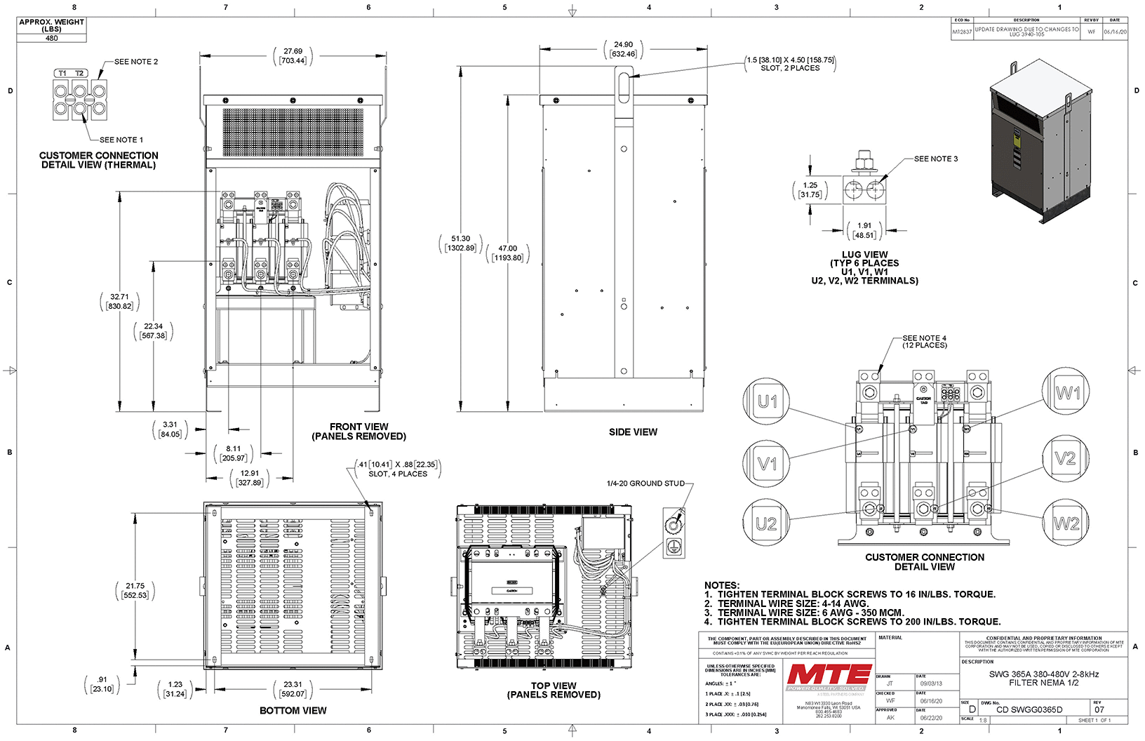 For ultimate motor protection and power quality, there is nothing better than the MTE SineWave Guardian® Filter. Designed to provide best-in-class protection for motors at distances up to 15,000 feet, this filter excels even in the hottest, harshest, and most remote locations on earth. By expertly cleaning the PWM waveforms generated by Variable Frequency Drives (VFDs) and rejecting the carrier frequency, the SineWave Guardian virtually eliminates high-frequency content and voltage peaks. This results in significantly reduced motor heating, extended equipment life, and minimized downtime. With its modular design and high efficiency, it is the premier choice for demanding applications from steel mills to oil fields.