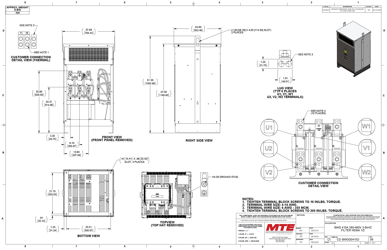 For ultimate motor protection and power quality, there is nothing better than the MTE SineWave Guardian® Filter. Designed to provide best-in-class protection for motors at distances up to 15,000 feet, this filter excels even in the hottest, harshest, and most remote locations on earth. By expertly cleaning the PWM waveforms generated by Variable Frequency Drives (VFDs) and rejecting the carrier frequency, the SineWave Guardian virtually eliminates high-frequency content and voltage peaks. This results in significantly reduced motor heating, extended equipment life, and minimized downtime. With its modular design and high efficiency, it is the premier choice for demanding applications from steel mills to oil fields.