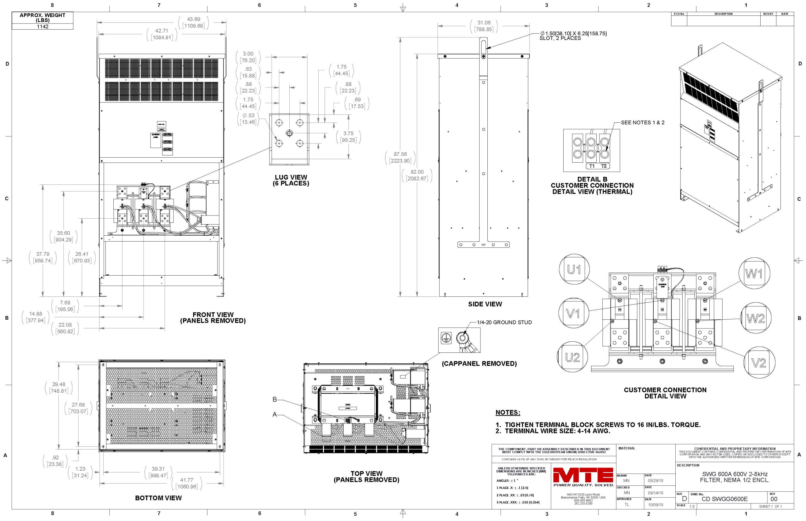 For ultimate motor protection and power quality, there is nothing better than the MTE SineWave Guardian® Filter. Designed to provide best-in-class protection for motors at distances up to 15,000 feet, this filter excels even in the hottest, harshest, and most remote locations on earth. By expertly cleaning the PWM waveforms generated by Variable Frequency Drives (VFDs) and rejecting the carrier frequency, the SineWave Guardian virtually eliminates high-frequency content and voltage peaks. This results in significantly reduced motor heating, extended equipment life, and minimized downtime. With its modular design and high efficiency, it is the premier choice for demanding applications from steel mills to oil fields.