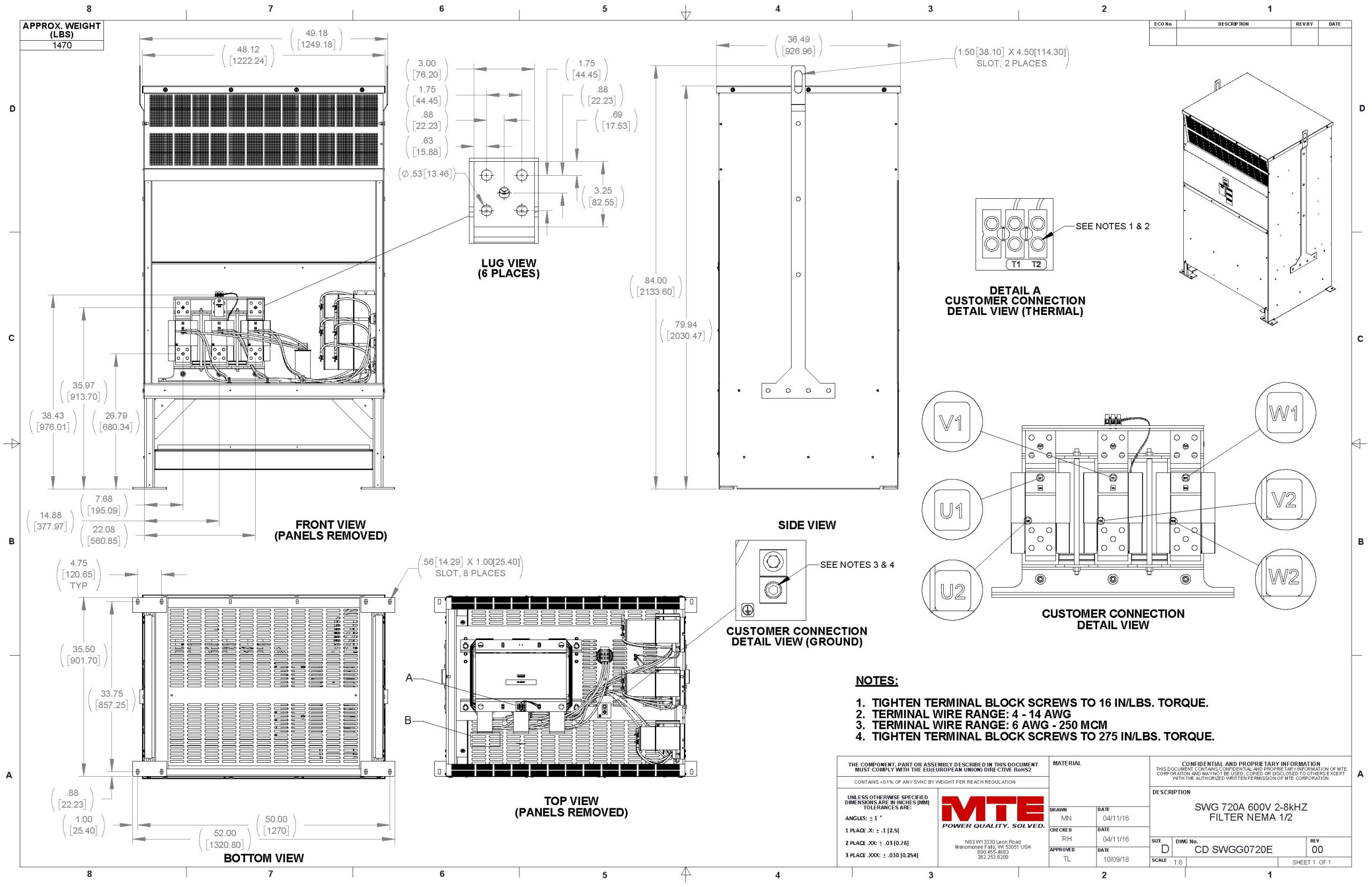 SWGG0720E – MTE | SineWave Guardian, 550-600vac, 0-60Hz, 720Amps, NEMA 1/2