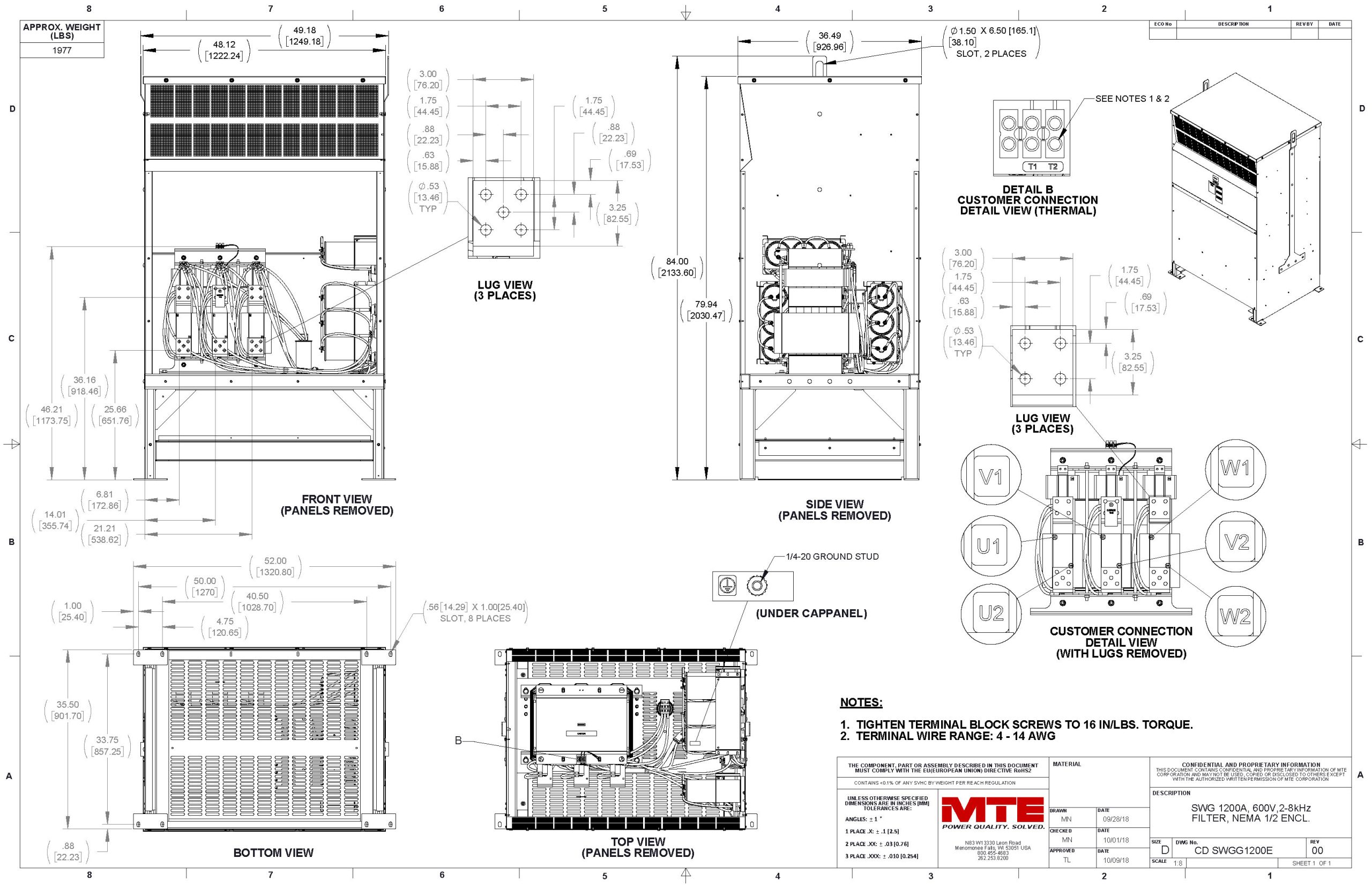 SWGG1200E – MTE | SineWave Guardian,550-600vac, 0-60Hz, 1200Amps,NEMA 1/2