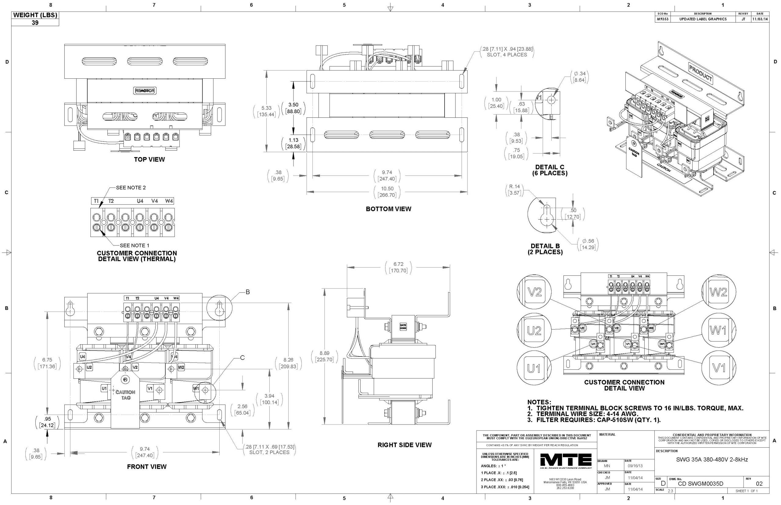 - Reduces motor heating and eliminates voltage peaks for extended motor life