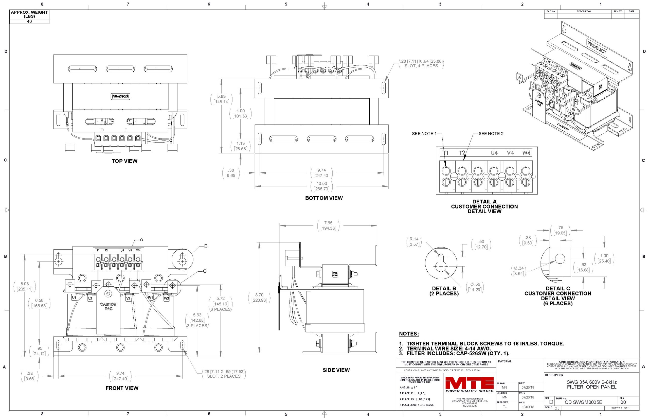 For ultimate motor protection and power quality, there is nothing better than the MTE SineWave Guardian® Filter. Designed to provide best-in-class protection for motors at distances up to 15,000 feet, this filter excels even in the hottest, harshest, and most remote locations on earth. By expertly cleaning the PWM waveforms generated by Variable Frequency Drives (VFDs) and rejecting the carrier frequency, the SineWave Guardian virtually eliminates high-frequency content and voltage peaks. This results in significantly reduced motor heating, extended equipment life, and minimized downtime. With its modular design and high efficiency, it is the premier choice for demanding applications from steel mills to oil fields.
