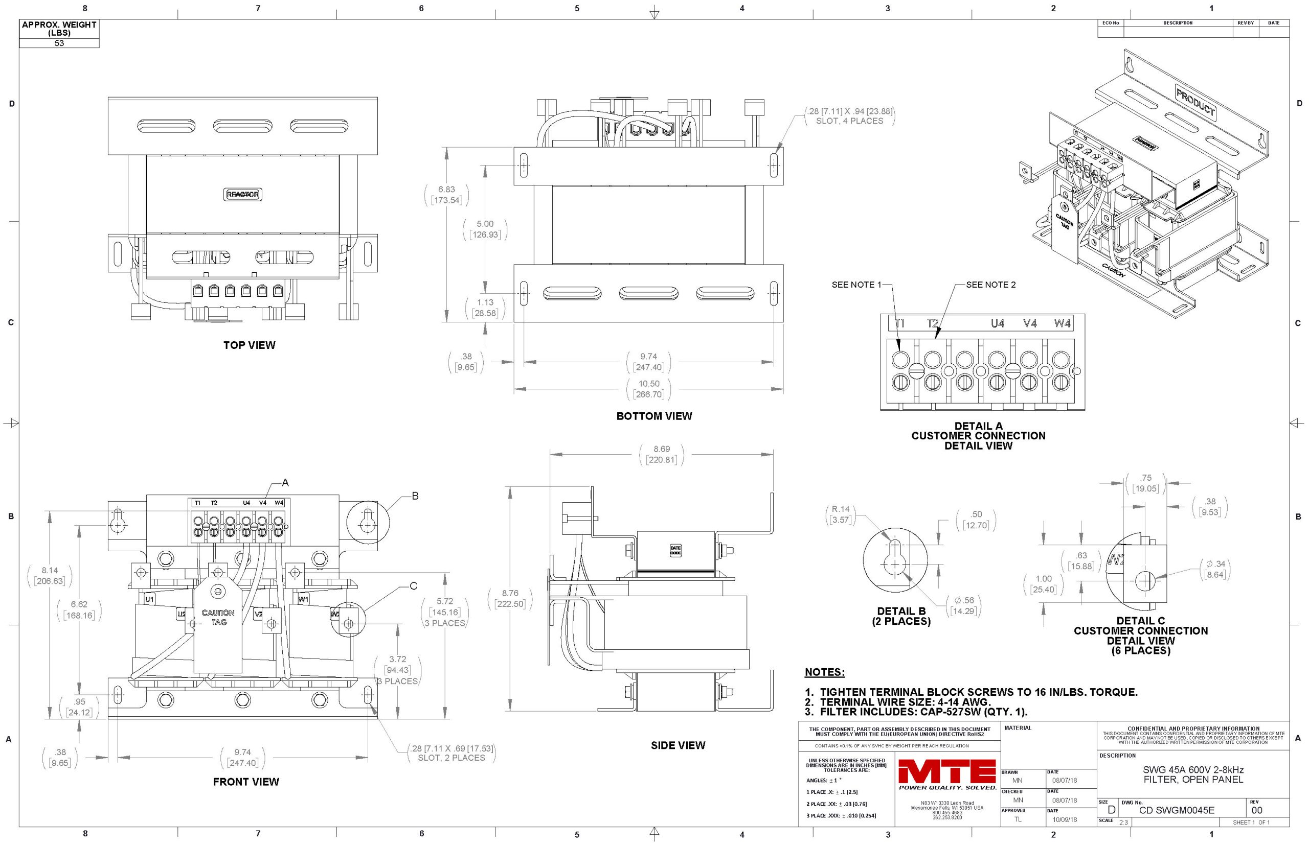 For ultimate motor protection and power quality, there is nothing better than the MTE SineWave Guardian® Filter. Designed to provide best-in-class protection for motors at distances up to 15,000 feet, this filter excels even in the hottest, harshest, and most remote locations on earth. By expertly cleaning the PWM waveforms generated by Variable Frequency Drives (VFDs) and rejecting the carrier frequency, the SineWave Guardian virtually eliminates high-frequency content and voltage peaks. This results in significantly reduced motor heating, extended equipment life, and minimized downtime. With its modular design and high efficiency, it is the premier choice for demanding applications from steel mills to oil fields.