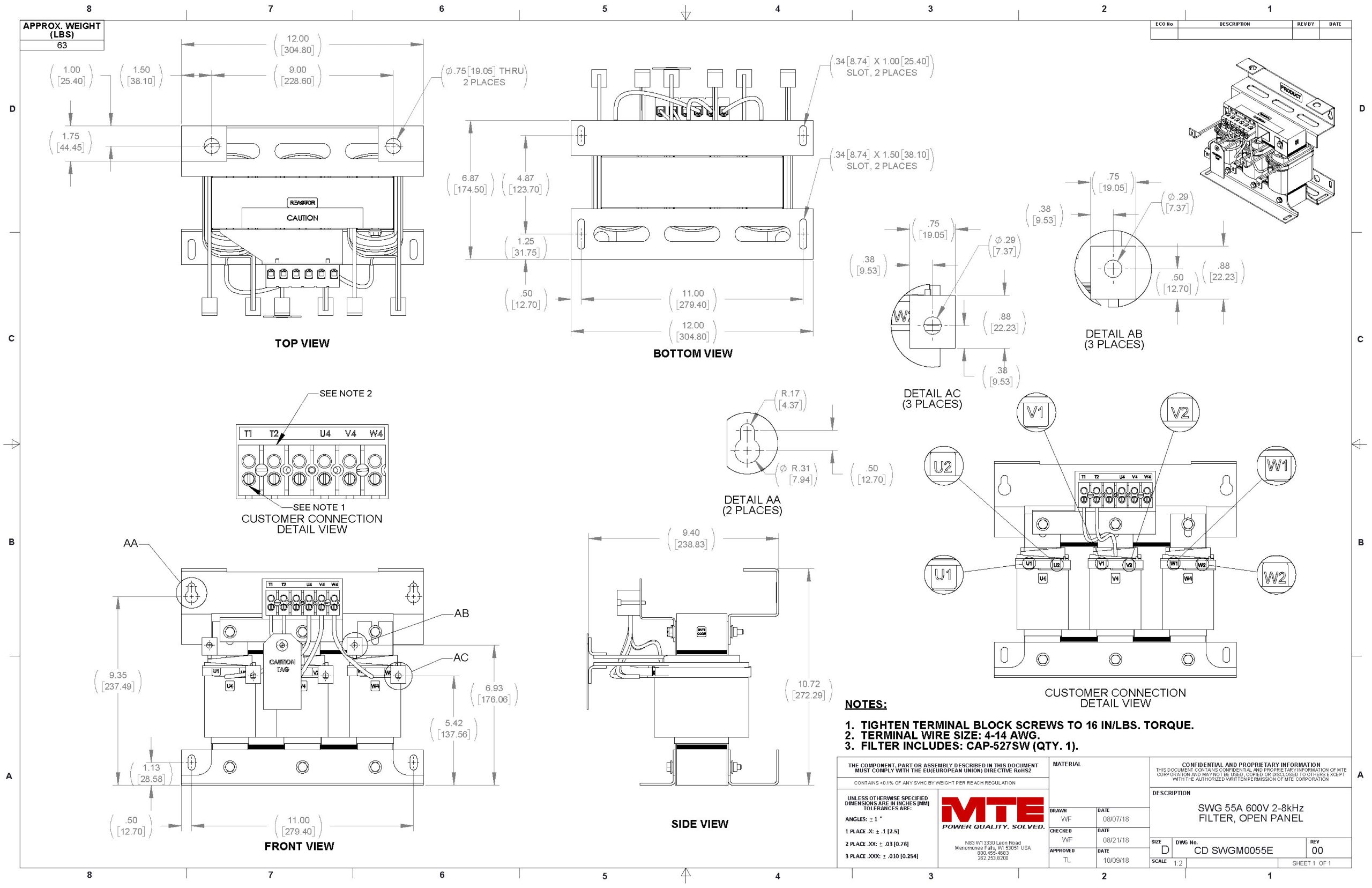 SWGM0055E – MTE | SineWave Guardian,550-600vac, 0-60Hz, 55Amps,Modular