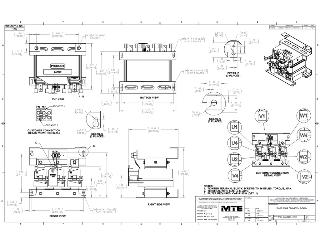 For ultimate motor protection and power quality, there is nothing better than the MTE SineWave Guardian® Filter. Designed to provide best-in-class protection for motors at distances up to 15,000 feet, this filter excels even in the hottest, harshest, and most remote locations on earth. By expertly cleaning the PWM waveforms generated by Variable Frequency Drives (VFDs) and rejecting the carrier frequency, the SineWave Guardian virtually eliminates high-frequency content and voltage peaks. This results in significantly reduced motor heating, extended equipment life, and minimized downtime. With its modular design and high efficiency, it is the premier choice for demanding applications from steel mills to oil fields.