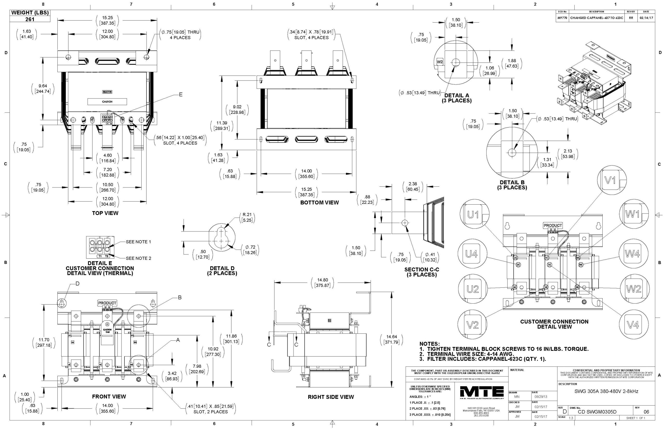 SWGM0305D – MTE | SineWave Guardian,380-480vac,0-60Hz,305Amps,Modular