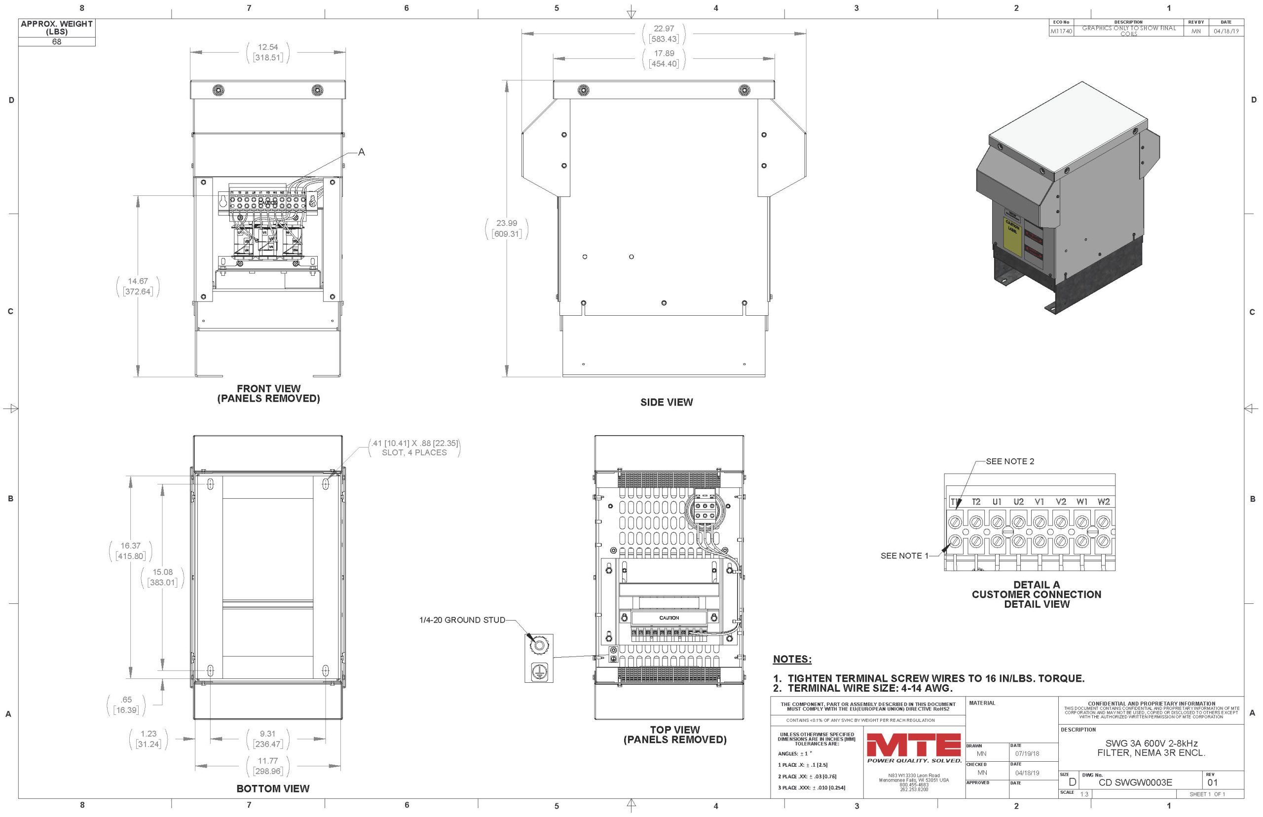 SWGW0003E – MTE | SineWave Guardian, 550-600vac, 0-60Hz, 3Amps, NEMA 3R