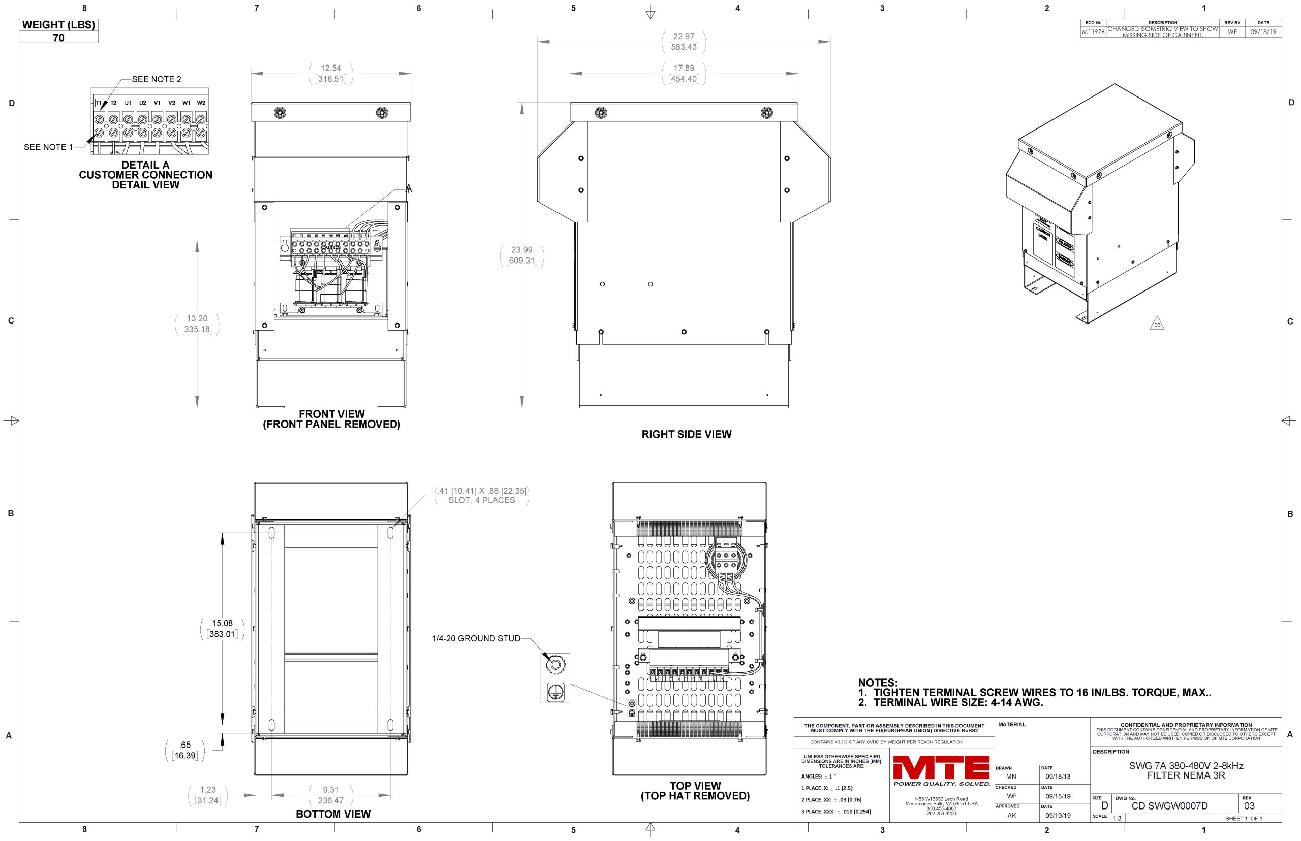 SWGW0007D – MTE | SineWave Guardian,380-480vac,0-60Hz,7Amps,NEMA3R