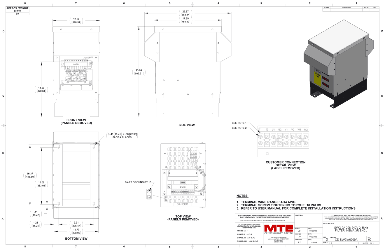 SWGW0009A – MTE | SineWave Guardian, 208-240vac, 0-60Hz, 9Am