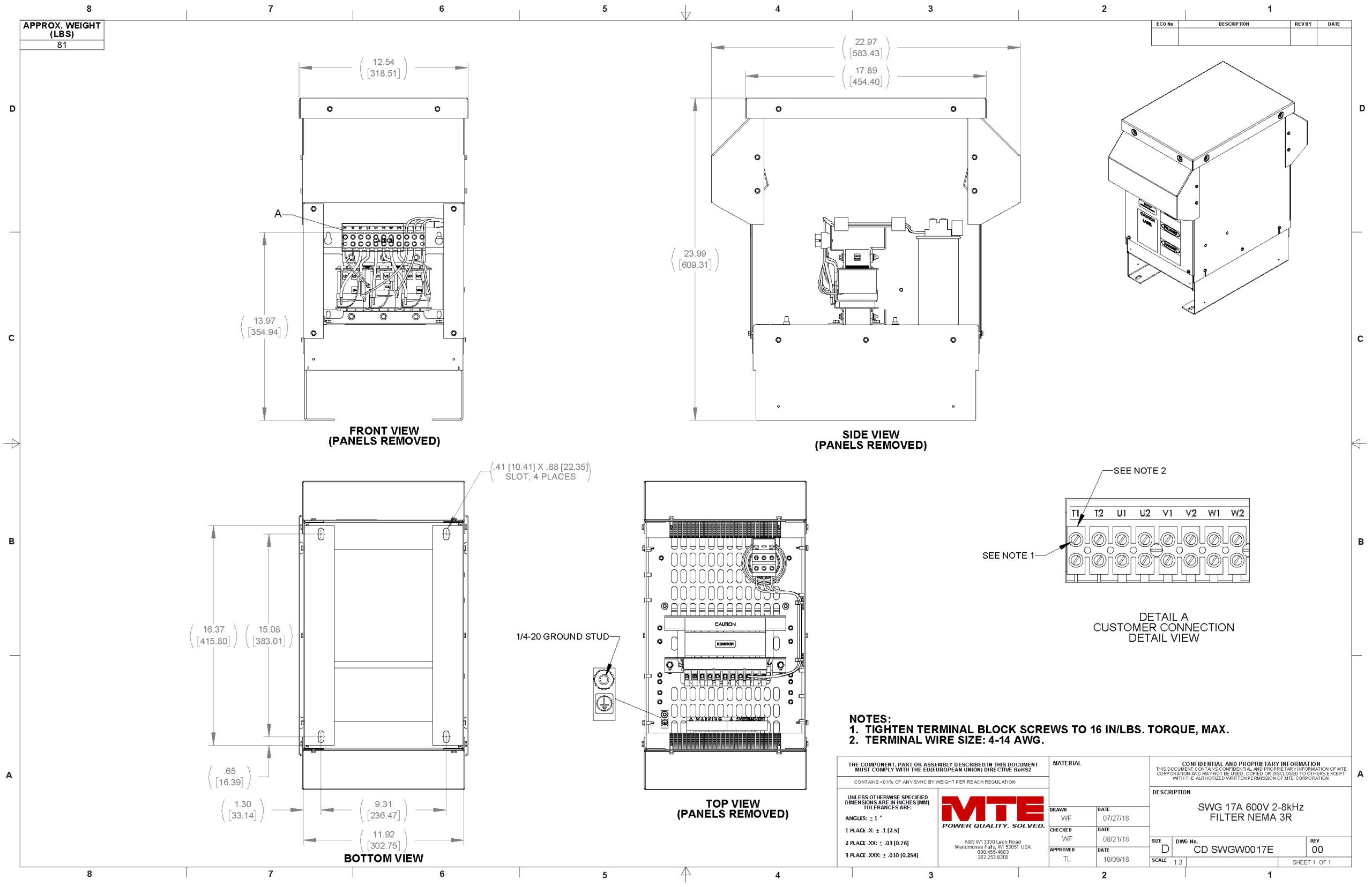 For ultimate motor protection and power quality, there is nothing better than the MTE SineWave Guardian® Filter. Designed to provide best-in-class protection for motors at distances up to 15,000 feet, this filter excels even in the hottest, harshest, and most remote locations on earth. By expertly cleaning the PWM waveforms generated by Variable Frequency Drives (VFDs) and rejecting the carrier frequency, the SineWave Guardian virtually eliminates high-frequency content and voltage peaks. This results in significantly reduced motor heating, extended equipment life, and minimized downtime. With its modular design and high efficiency, it is the premier choice for demanding applications from steel mills to oil fields.