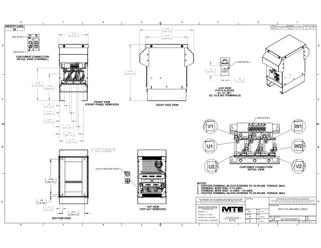 SWGW0027D – MTE | SineWave Guardian, 380-480vac, 0-60Hz, 27Amps, NEMA3R
