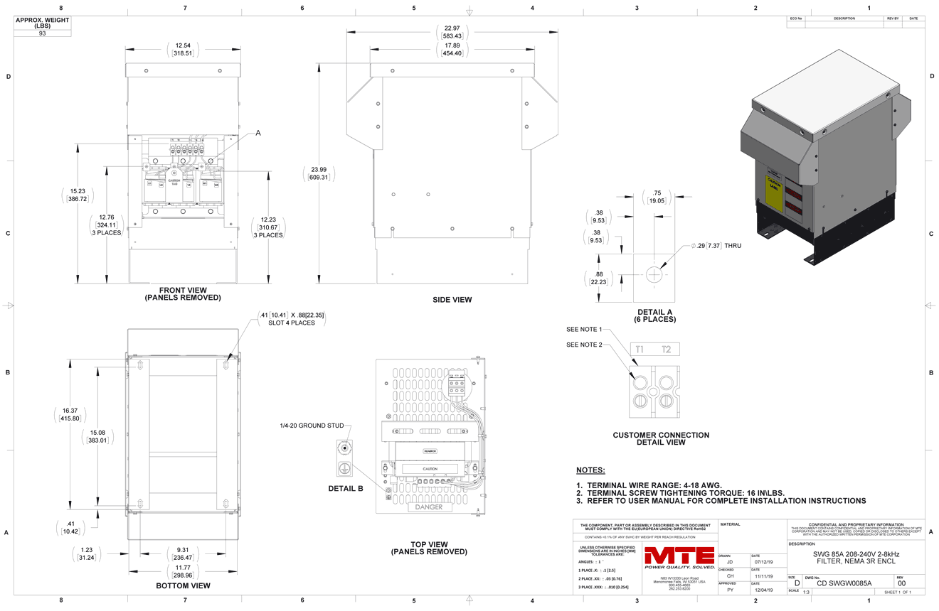 SWGW0085A – MTE | SineWave Guardian, 208-240vac, 0-60Hz, 85A
