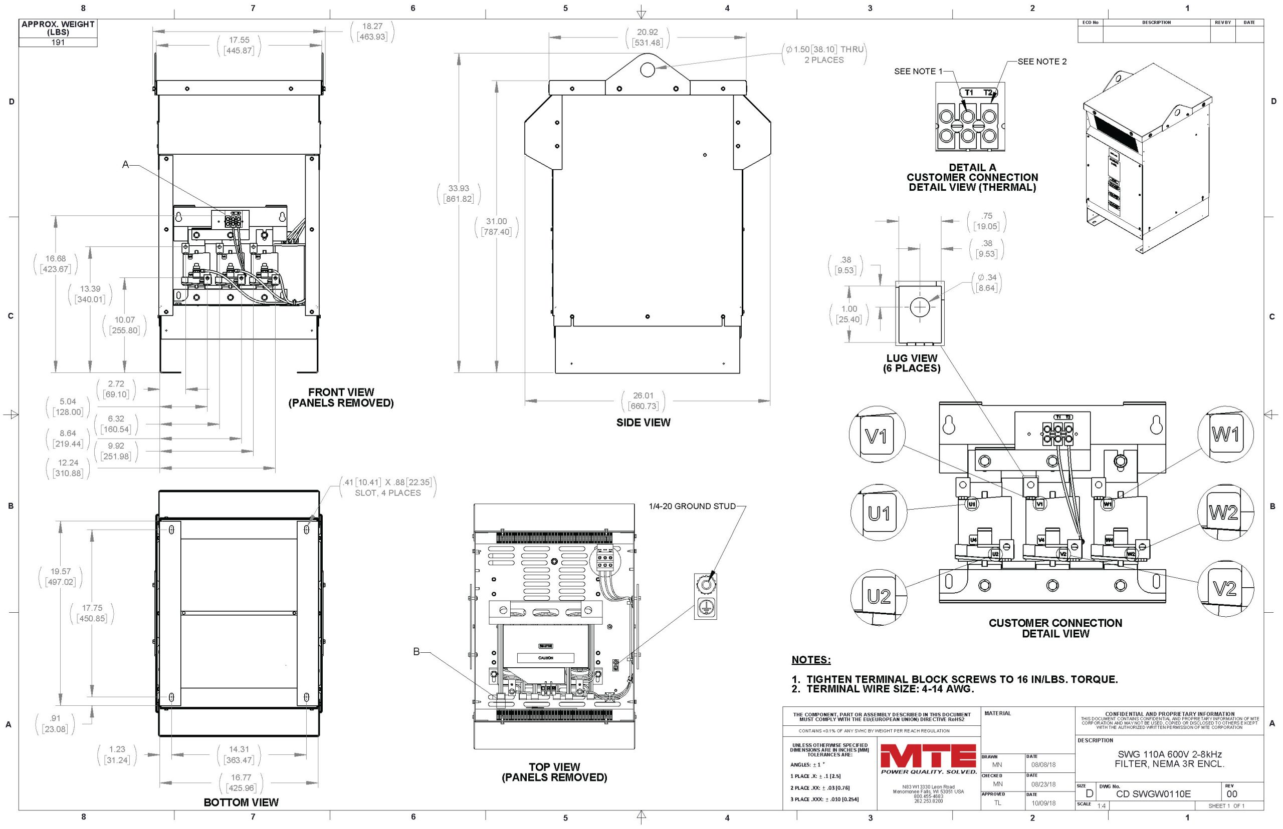 For ultimate motor protection and power quality, there is nothing better than the MTE SineWave Guardian® Filter. Designed to provide best-in-class protection for motors at distances up to 15,000 feet, this filter excels even in the hottest, harshest, and most remote locations on earth. By expertly cleaning the PWM waveforms generated by Variable Frequency Drives (VFDs) and rejecting the carrier frequency, the SineWave Guardian virtually eliminates high-frequency content and voltage peaks. This results in significantly reduced motor heating, extended equipment life, and minimized downtime. With its modular design and high efficiency, it is the premier choice for demanding applications from steel mills to oil fields.