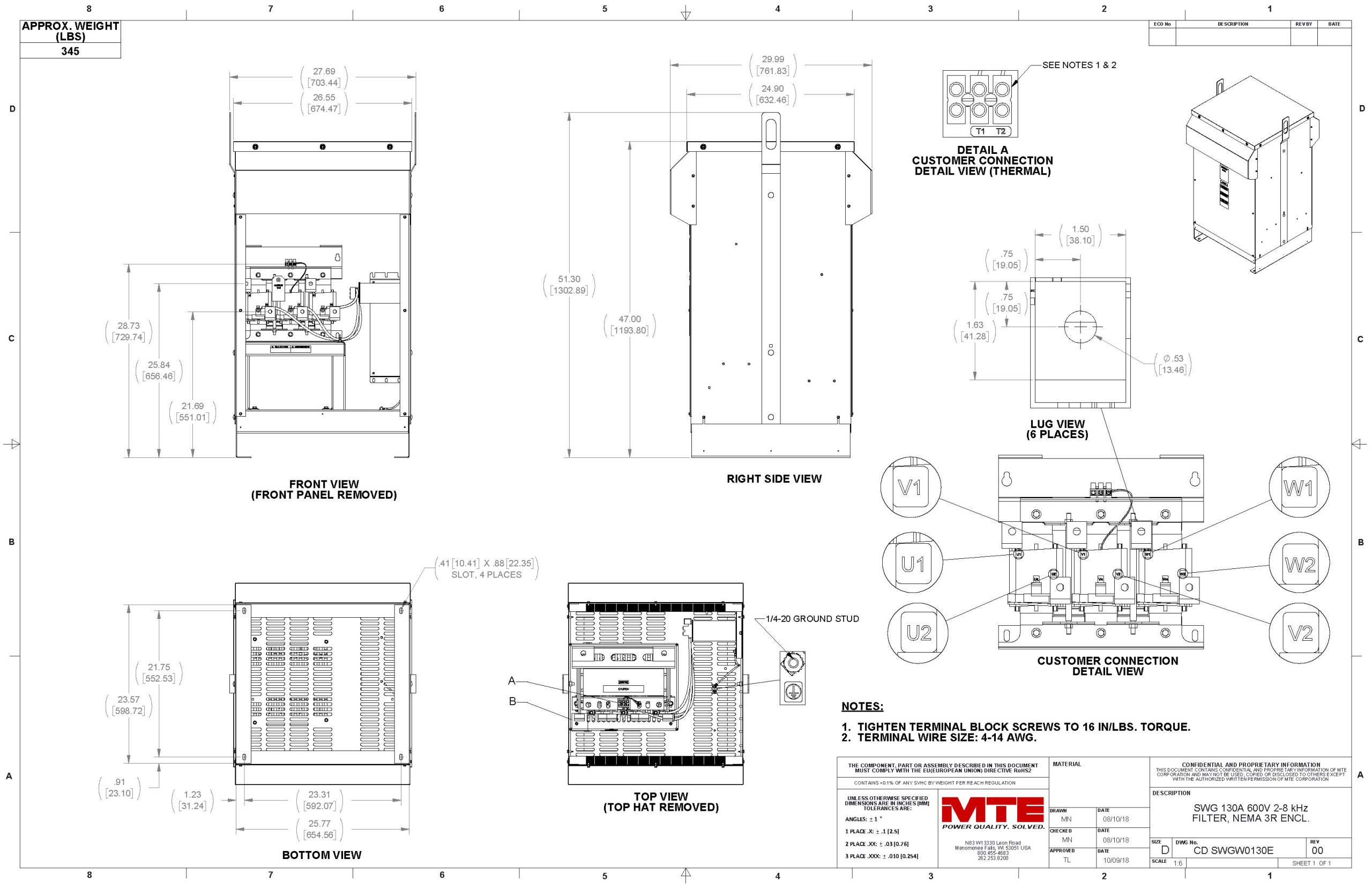 For ultimate motor protection and power quality, there is nothing better than the MTE SineWave Guardian® Filter. Designed to provide best-in-class protection for motors at distances up to 15,000 feet, this filter excels even in the hottest, harshest, and most remote locations on earth. By expertly cleaning the PWM waveforms generated by Variable Frequency Drives (VFDs) and rejecting the carrier frequency, the SineWave Guardian virtually eliminates high-frequency content and voltage peaks. This results in significantly reduced motor heating, extended equipment life, and minimized downtime. With its modular design and high efficiency, it is the premier choice for demanding applications from steel mills to oil fields.