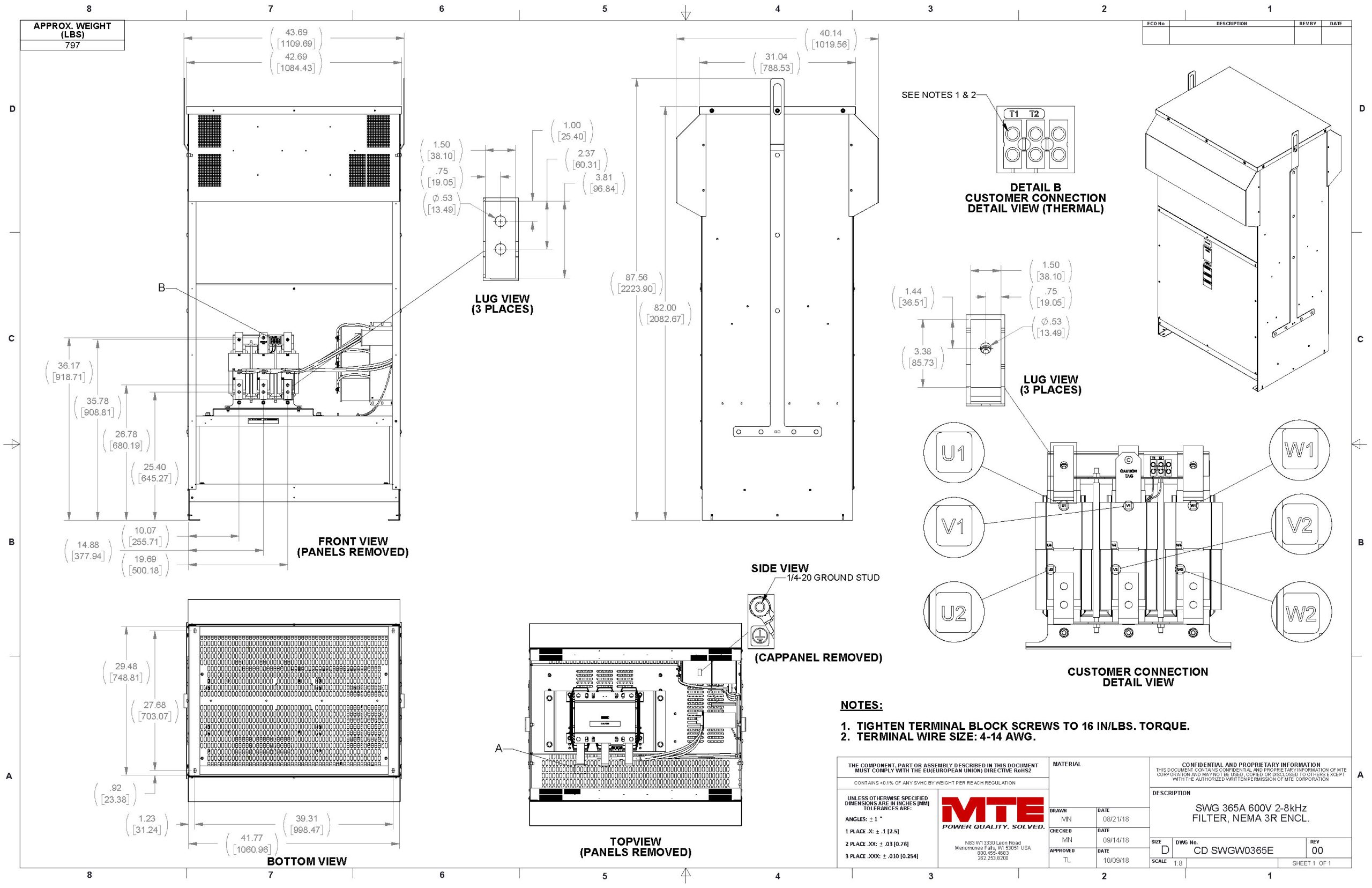 For ultimate motor protection and power quality, there is nothing better than the MTE SineWave Guardian® Filter. Designed to provide best-in-class protection for motors at distances up to 15,000 feet, this filter excels even in the hottest, harshest, and most remote locations on earth. By expertly cleaning the PWM waveforms generated by Variable Frequency Drives (VFDs) and rejecting the carrier frequency, the SineWave Guardian virtually eliminates high-frequency content and voltage peaks. This results in significantly reduced motor heating, extended equipment life, and minimized downtime. With its modular design and high efficiency, it is the premier choice for demanding applications from steel mills to oil fields.