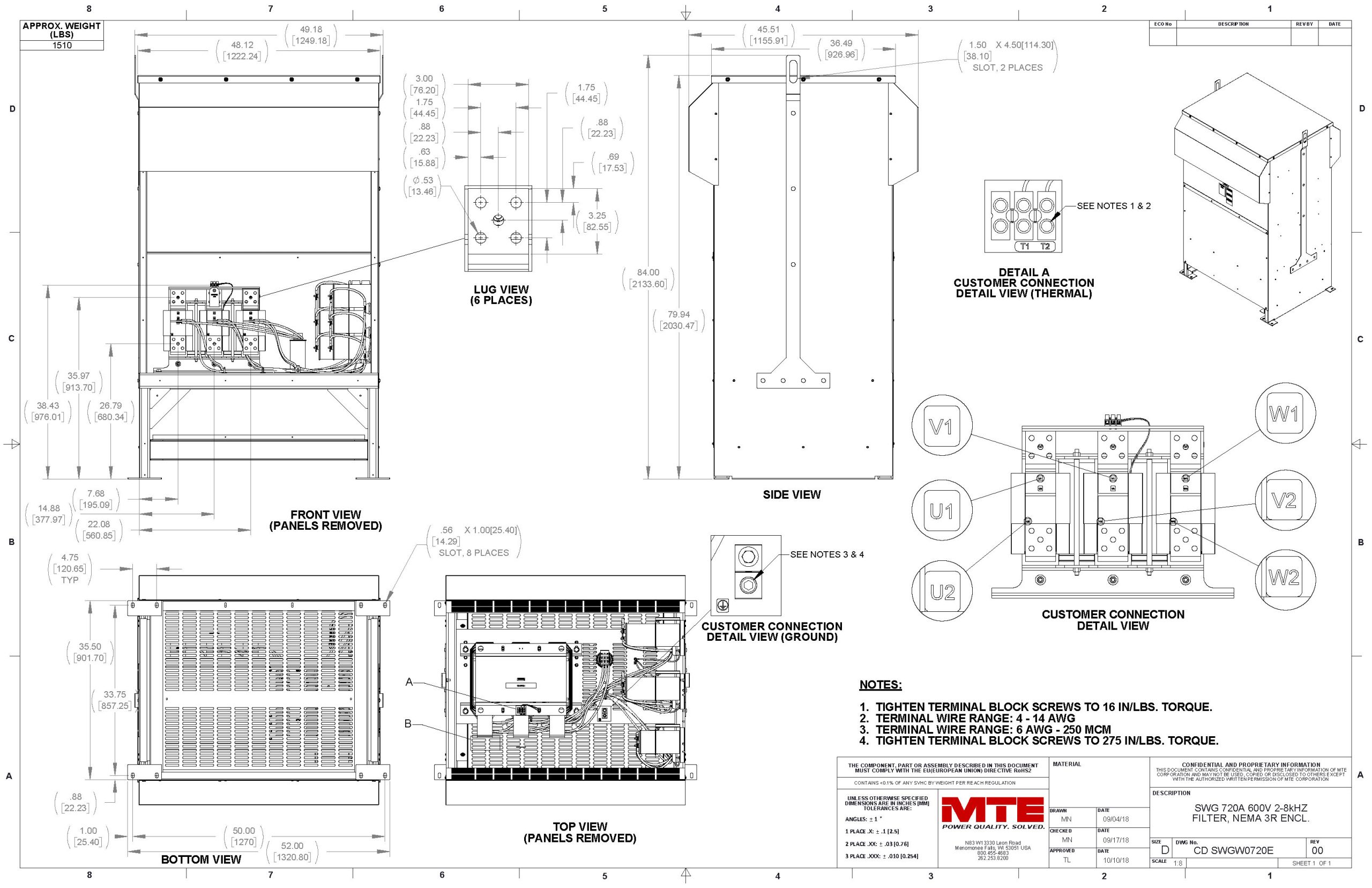 For ultimate motor protection and power quality, there is nothing better than the MTE SineWave Guardian® Filter. Designed to provide best-in-class protection for motors at distances up to 15,000 feet, this filter excels even in the hottest, harshest, and most remote locations on earth. By expertly cleaning the PWM waveforms generated by Variable Frequency Drives (VFDs) and rejecting the carrier frequency, the SineWave Guardian virtually eliminates high-frequency content and voltage peaks. This results in significantly reduced motor heating, extended equipment life, and minimized downtime. With its modular design and high efficiency, it is the premier choice for demanding applications from steel mills to oil fields.