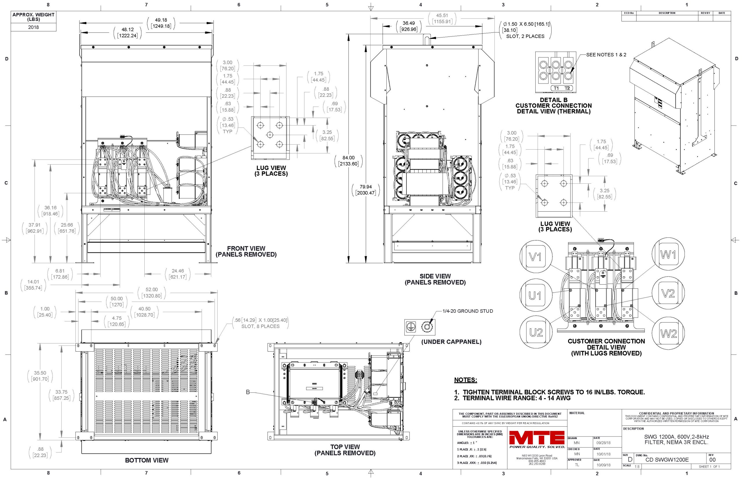 SWGW1200E – MTE | SineWave Guardian,550-600vac, 0-60Hz, 1200Amps,NEMA 3R