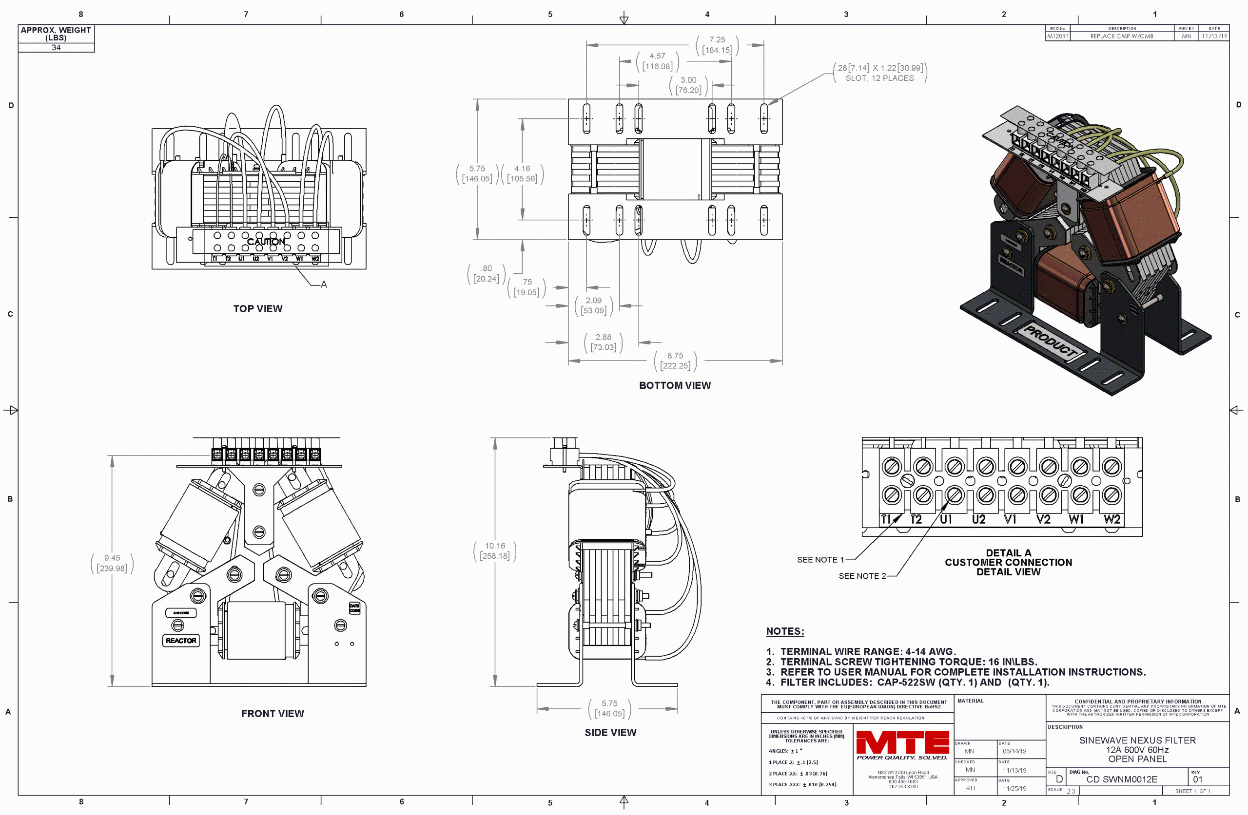SWNM0012E – MTE | SineWave Nexus, 600VAC, 60Hz, 12Amps, M