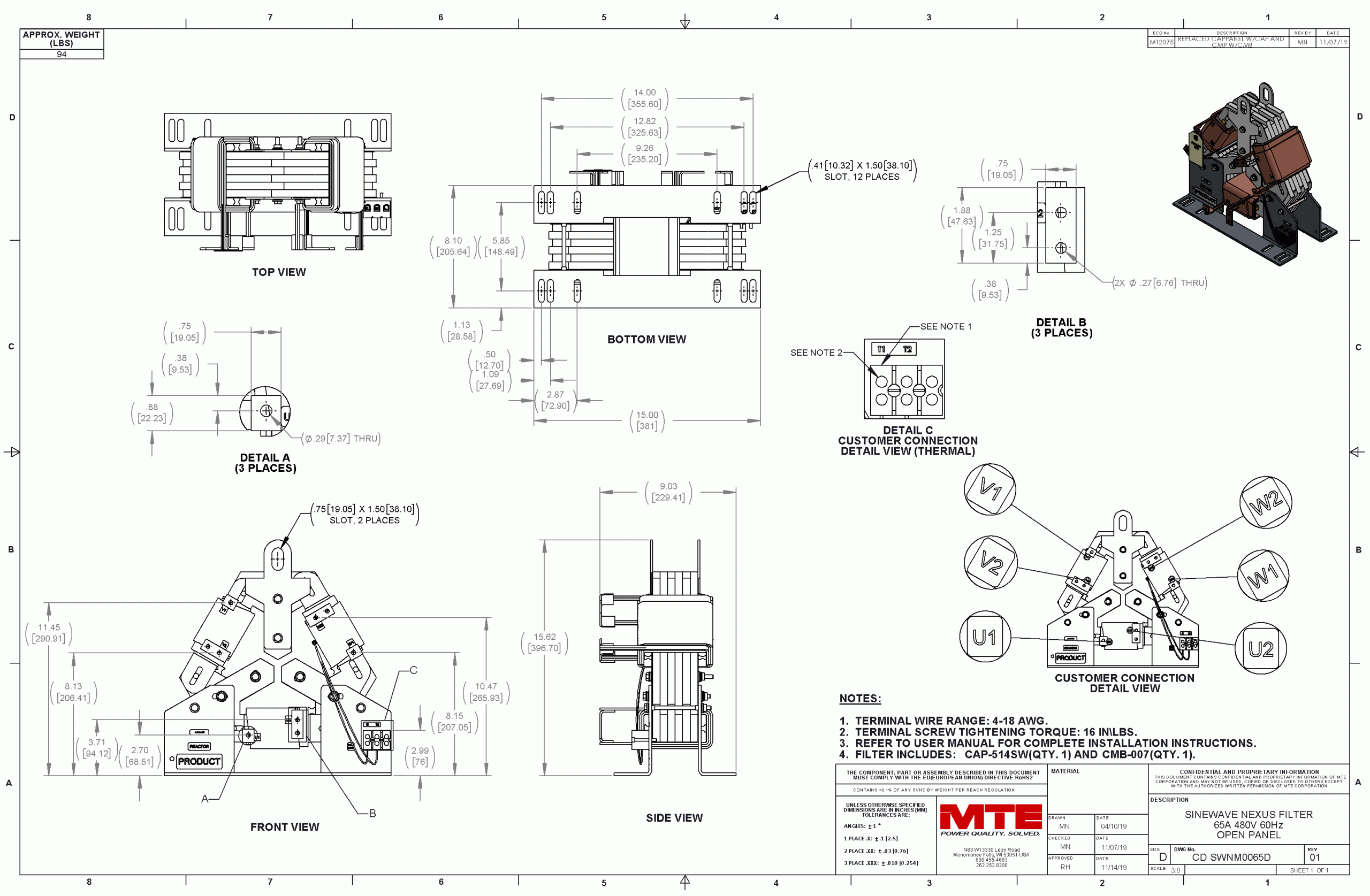 SWNM0065D – MTE | SineWave Nexus, 380-480VAC, 60Hz, 65Amp