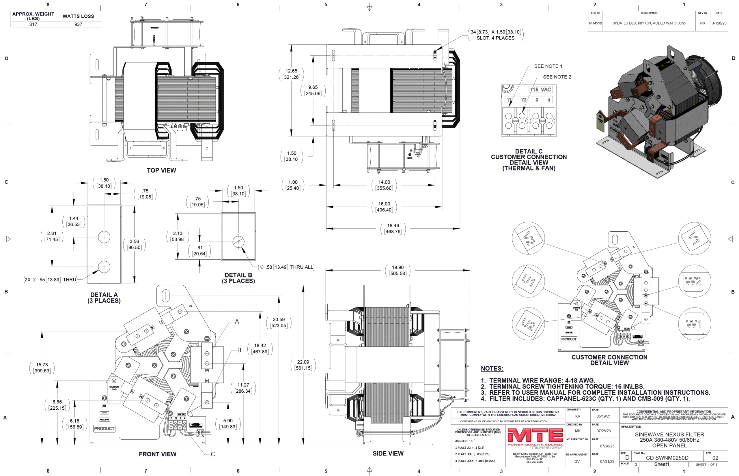 SWNM0250D – MTE | SineWave Nexus, 380-480VAC, 60Hz, 250Amp
